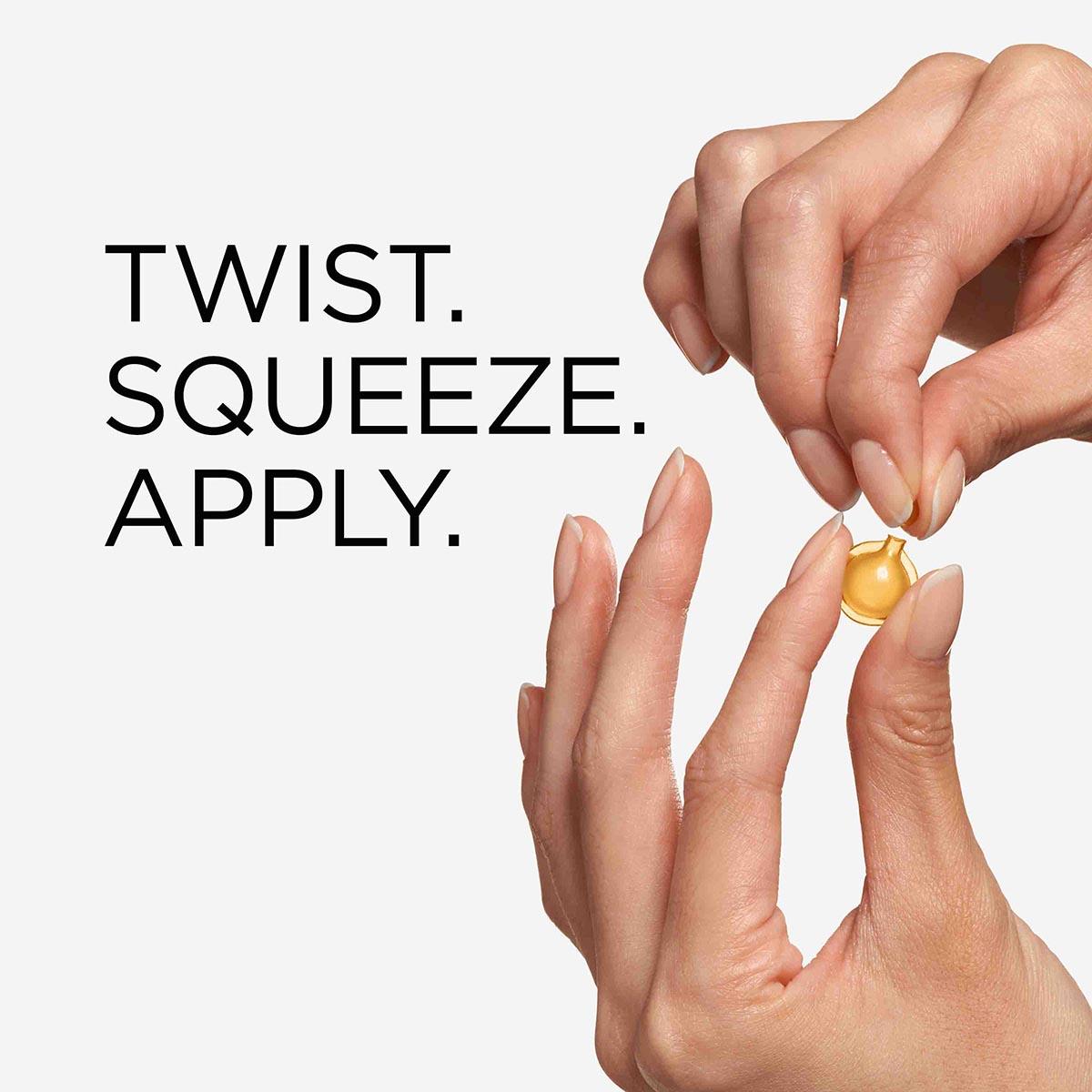 To open capsules: Gently twist tab around twice and squeeze onto fingertips.