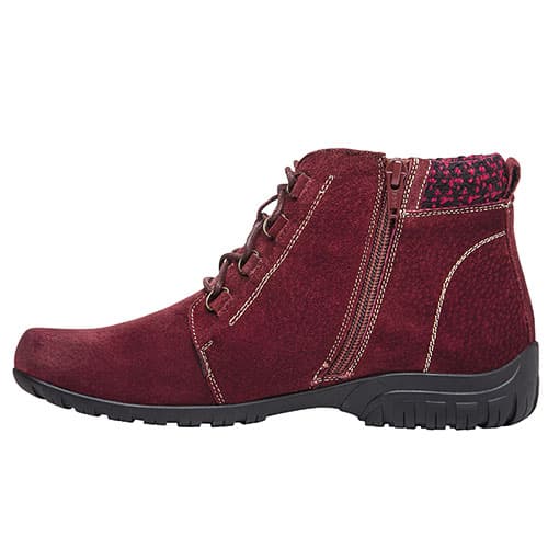 The Womens Propèt® Delaney ankle boots showcase a Scotchgard™ treated suede upper with a padded tweed fabric collar. These boots feature a cushioned EVA insole and Nylex lining for year round wear! The durable rubber outsole provides for traction and comfort.
