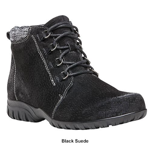 Description The Womens Propèt® Delaney ankle boots showcase a Scotchgard™ treated suede upper with a padded tweed fabric collar. These boots feature a cushioned EVA insole...