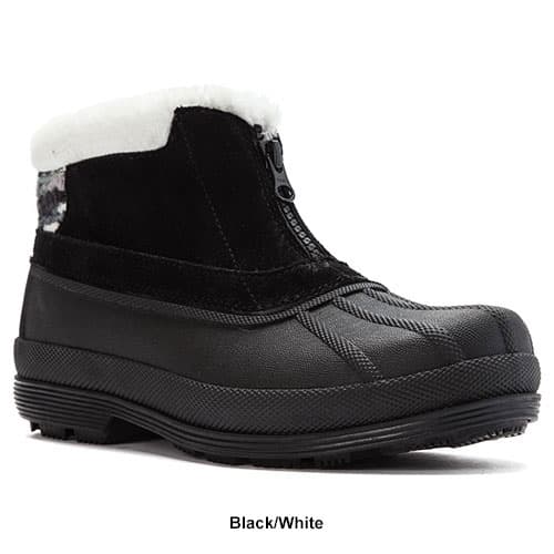 The Womens Propèt® Lumi Lace ankle zip boots showcase a Scotchgard™ treated suede and knit upper with a soft pile lining. These boots are crafted with a Sealtex® waterproof construction for weather resistance, a Vaporex® heat-retaining double insole system for extra insulation, cushion, and custom fit. They also feature a Thinsulate® lining for extra warmth on those cold days. The rubber outsole is designed for positive traction and slip resistance. Heel height: 1.5 inches. Shaft height: 5.5 inches.