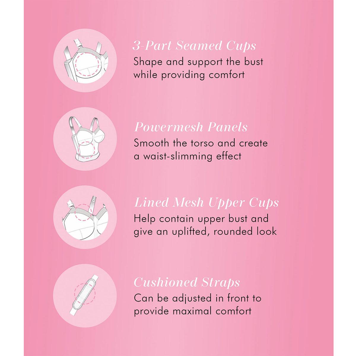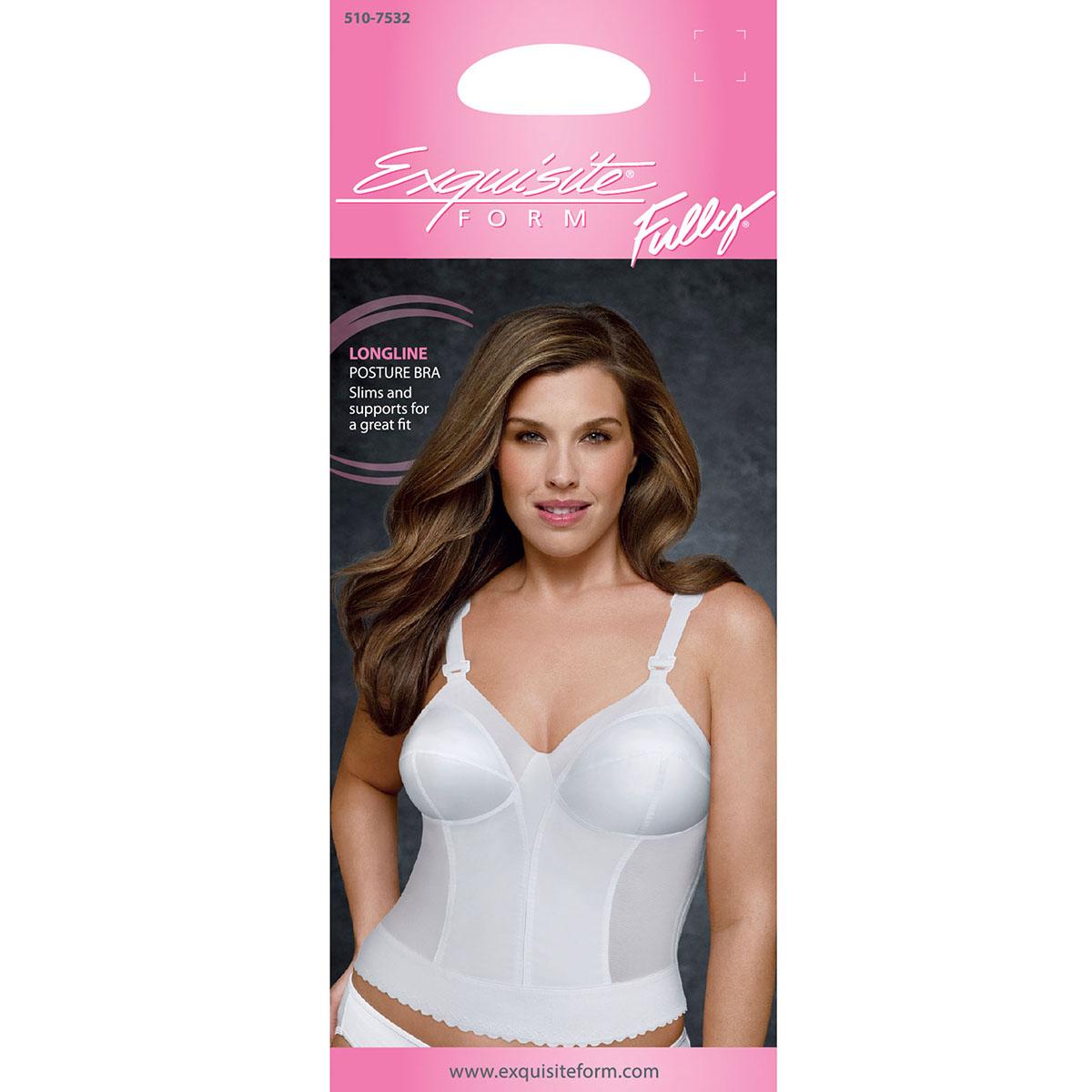 Description The Exquisite Form® Fully® back close longline bra. Made to smooth the torso while providing extra support and comfort. Full-coverage cups add lift and contouring...