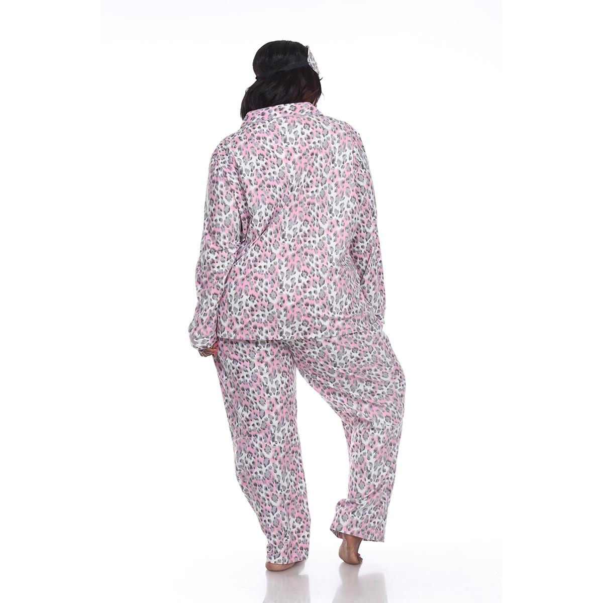 Description The Plus Size White Mark grey cheetah pajama set is very comfortable to touch and wear. The 3 piece sleep set features a long-sleeve button-down top, long leg regular...