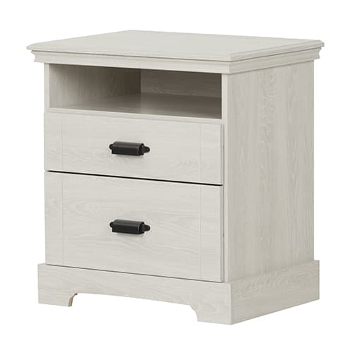 Description This South Shore Avilla 2 drawer nightstand has a lovely and original cottage style! It features 2 storage drawers, as well as an open space for your books, reading...