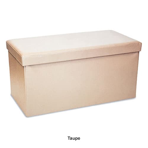 The FHE faux leather storage bench adds elegance and usefulness to any room. The color options let you match it with your current décor with ease. The top is removable and is perfect for storing blankets, books, pillows, or other necessities. Faux leather. Dimensions: 30" x 16" x 16".