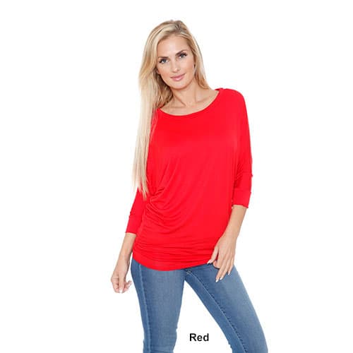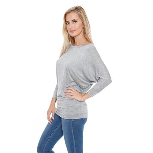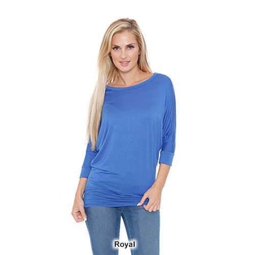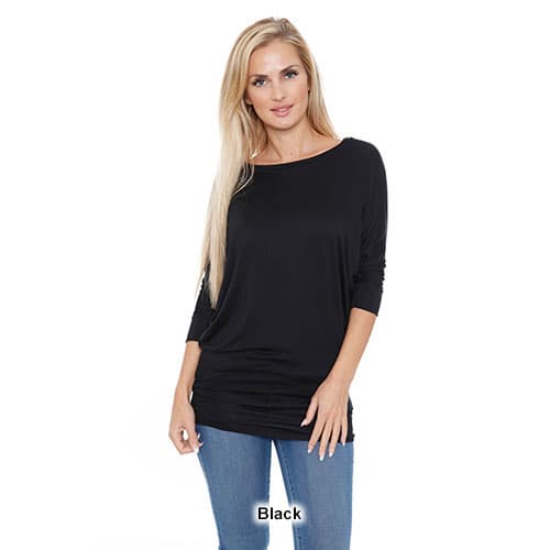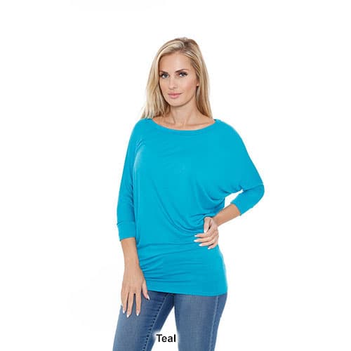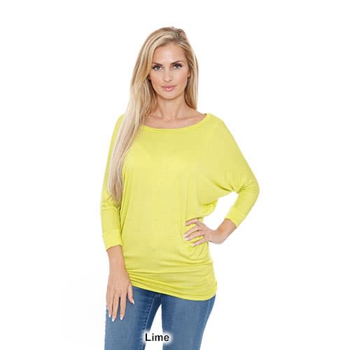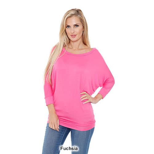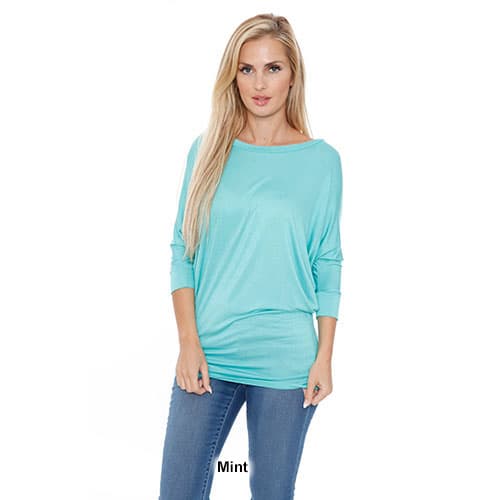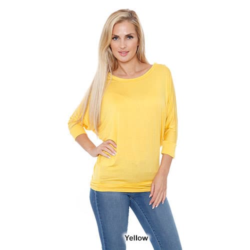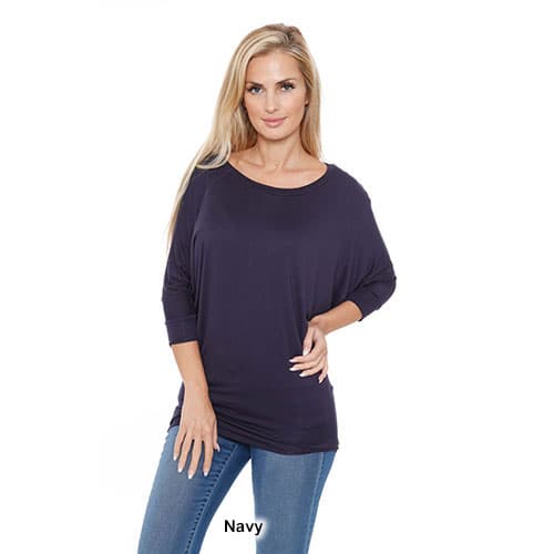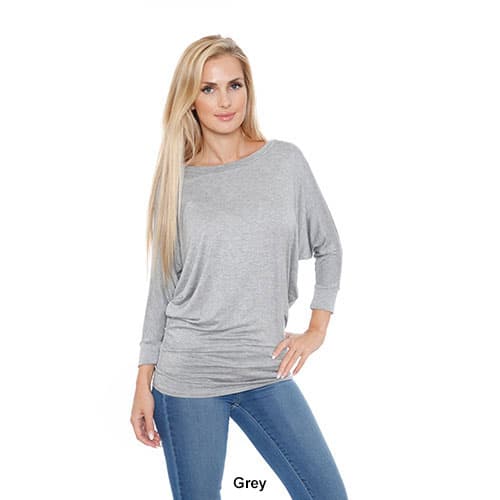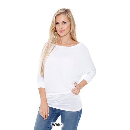 Description On or off the shoulder, this super soft Womens White Mark marled banded dolman top offers effortless style! This 3/4 sleeve, scoop neck top is a downtime essential....