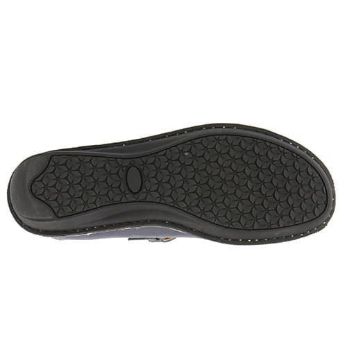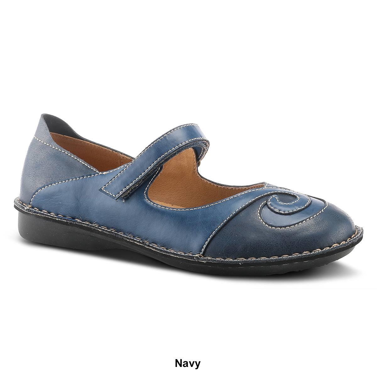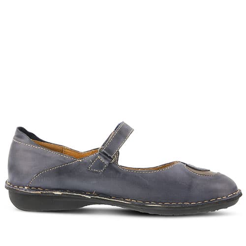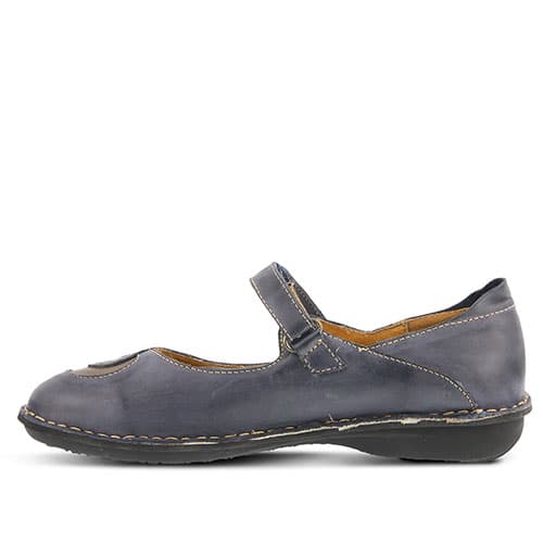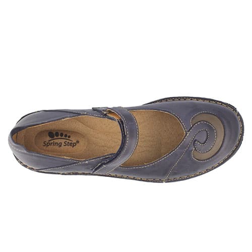 The Spring Step Cosmic Mary Jane flats showcase a two-tone colored style with an adjustable hook and loop strap and contrast stitch detailing. They feature a rounded toe leather lining and removable soft padded insoles. These are finished with flexible rubber outsoles.