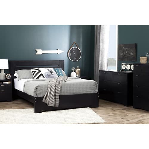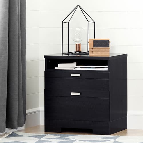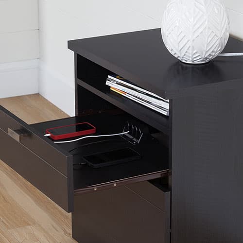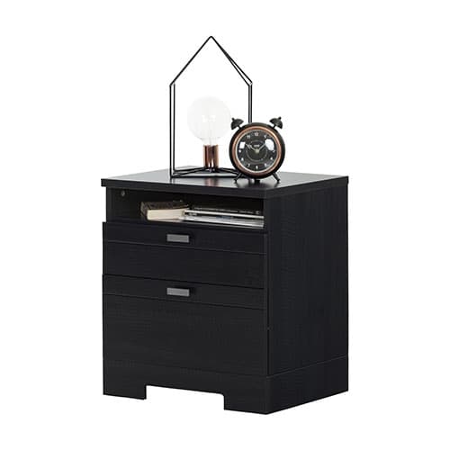 South Shore Nightstand with Drawers & Cord Catcher-Black