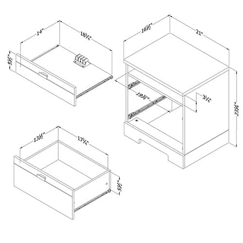 Use this South Shore nightstand with drawers and cord catcher from the Reevo collection to add storage to your kid’s rooms or your own. Thanks to its neutral finish this nightstand easily coordinates with any décor. This nightstand allows for easy wire management that allows you to charge a phone, tablet, or other device. The nightstand also has a sliding shelf and includes a cable grip for keeping cords together.