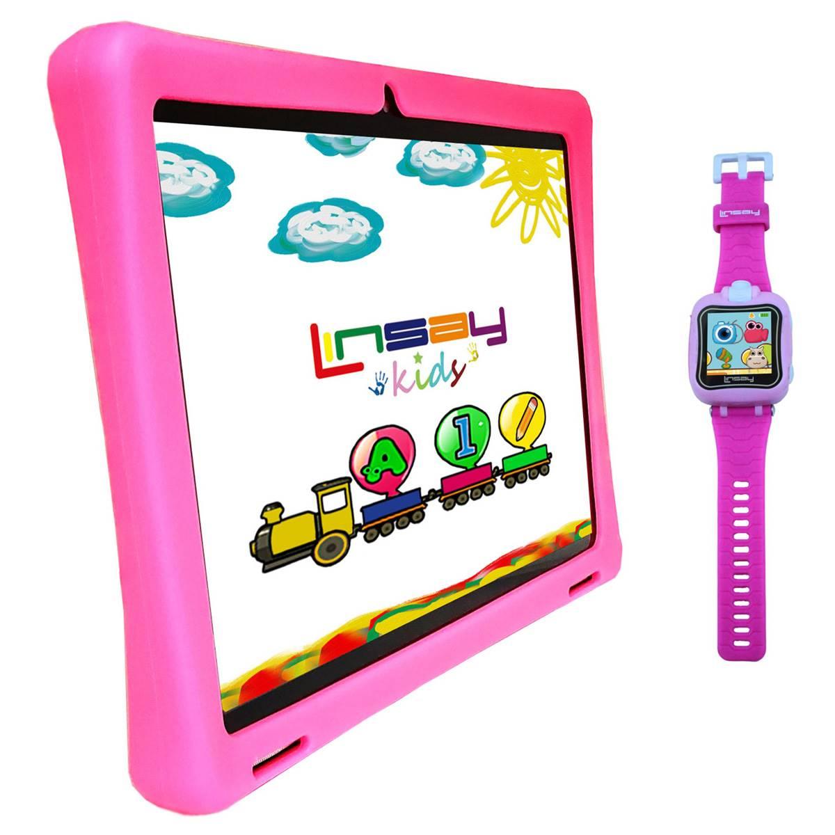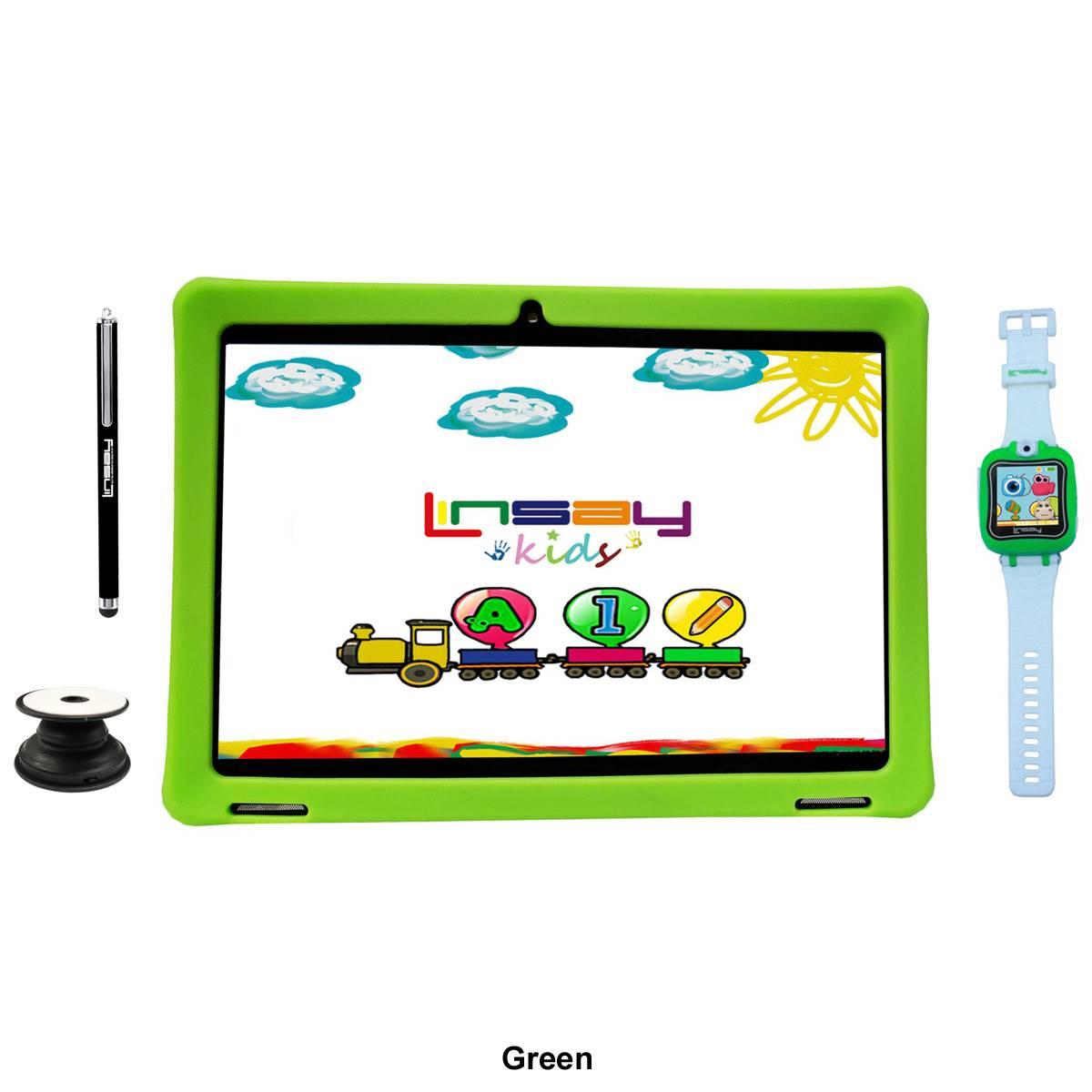 Description Meet the kids Linsay Android 12 tablet with smart watch. It features a defender case, kids smart watch, pop holder, and pen stylus. Playing and watching are super...