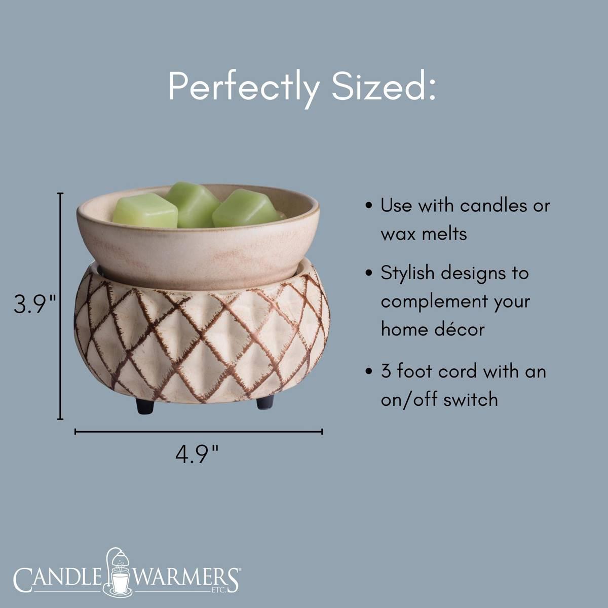 Description The Candle Warmers Etc. Lattice 2-in-1 Wax Warmer features a vintage cream finish with a reactive glaze and lattice pattern, making this warmer an instant classic. It...