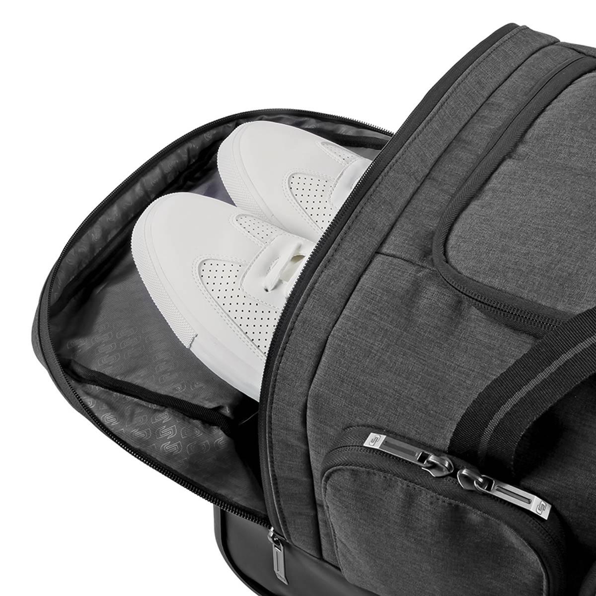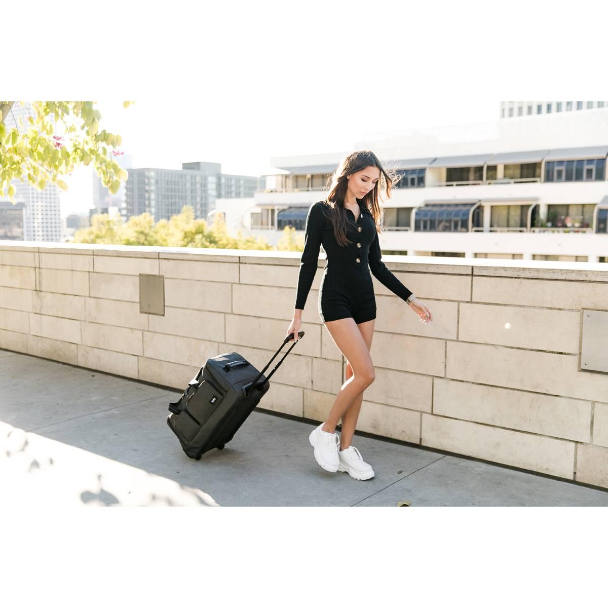 The Solo NY Leroy rolling duffel meets carry-on requirements for most major airlines. Featuring two front zippered pockets, separate shoe/laundry compartment, push-button telescoping handle system, and easy glide wheels.