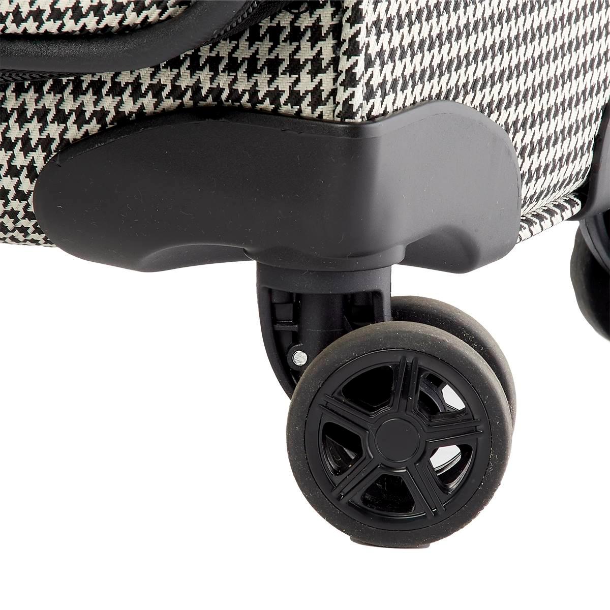 This London Fog Oxford III 20-inch carry-on spinner is durable and lightweight. Eight low-profile Control Track spinner wheels make walking through the airport a breeze. The luggage fits new airline restrictions with an overall height under 22" including wheels and handle. The interior features two shoe pockets and a zippered storage pocket. This carry-on is perfect for all your travel needs.