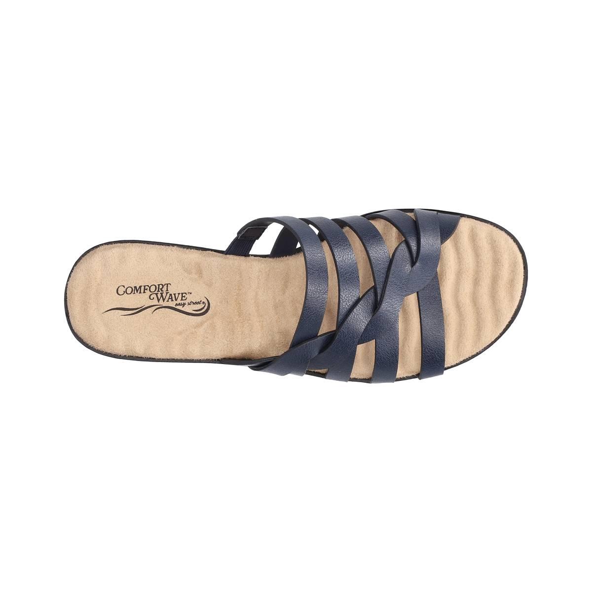 The asymmetrical woven strappy vamp offers on trend styling in these Womens Easy Street Sheri sandals. It is the perfect way to slide into total comfort. Designed with a Comfort Wave padded insole on a lightweight flexible outsole to provide the ultimate comfort experience with every step you take. You will want to pair these with your favorite summer attire.