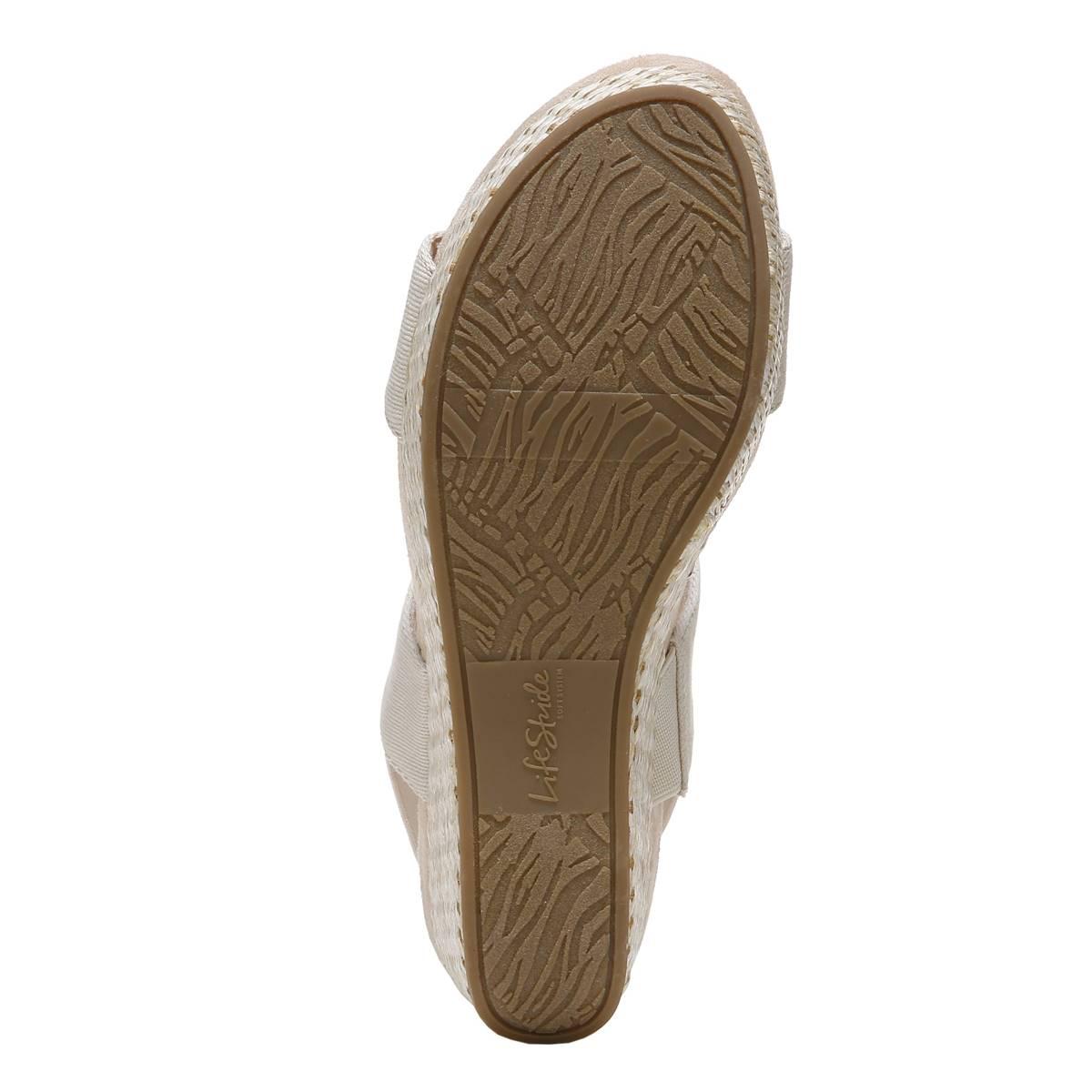 Description Keep your options open in these Womens LifeStride Delta slingback wedge sandals. Features include a canvas upper with an open toe, slip-on fit, woven heel, and...