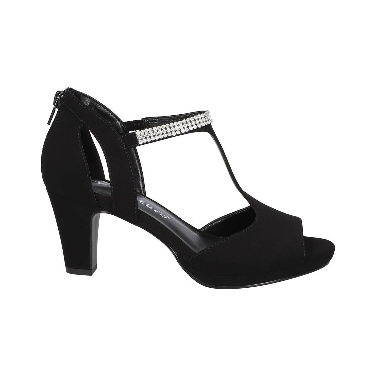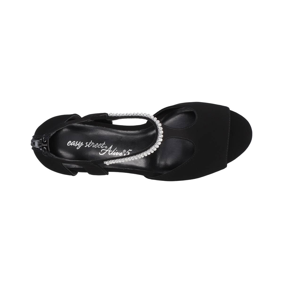 Description Stand out with these Womens Easy Street Flash dress sandals. The t-strap upper design brings a sleekness to your office attire and the stones on the evening colors...