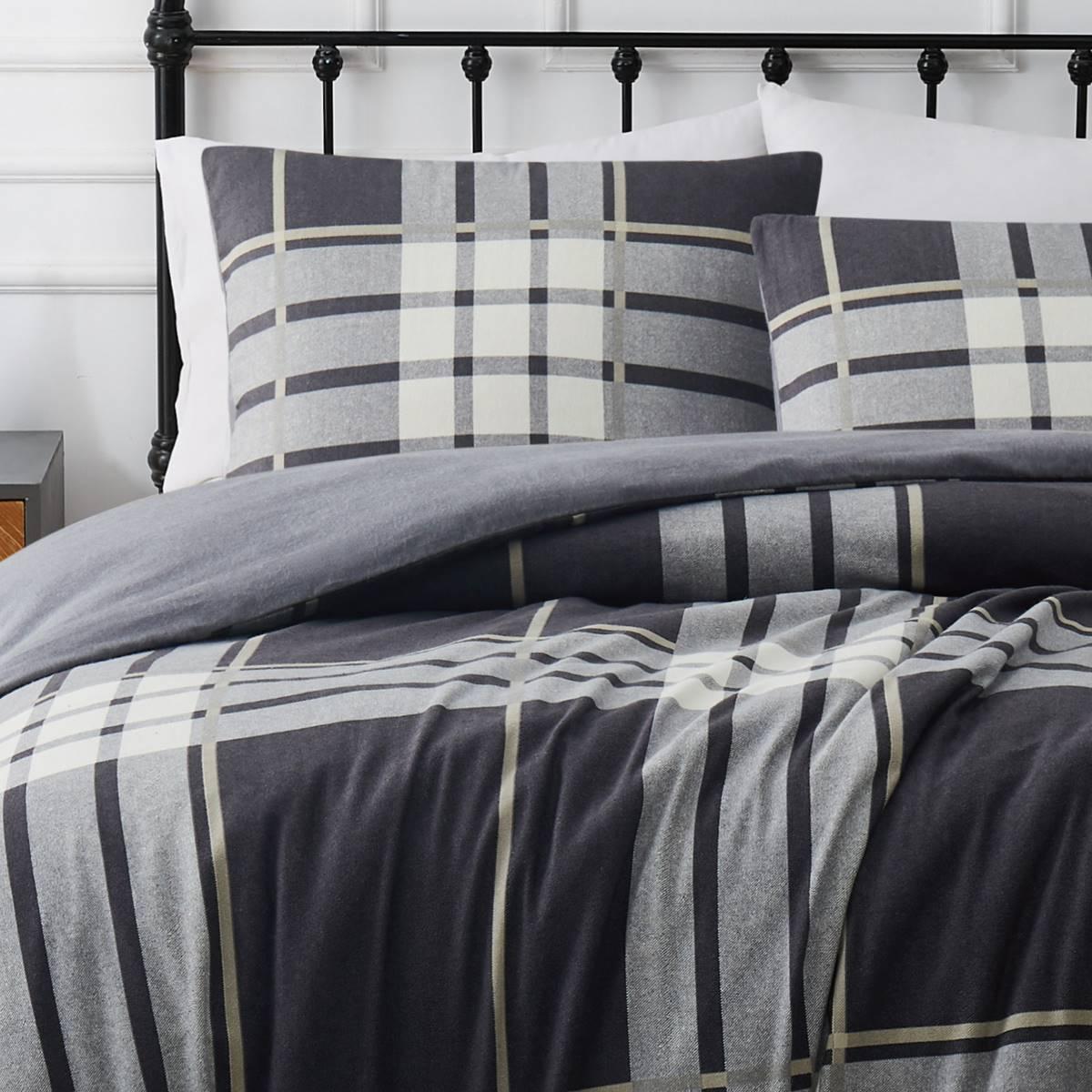 This Truly Soft Milo Plaid Duvet Cover Set will tie together any room. The plaid pattern in shades of black and white on the face adds further interest while keeping them easy to coordinate. Made of cotton flannel fabric with the signature Truly Soft treatment.