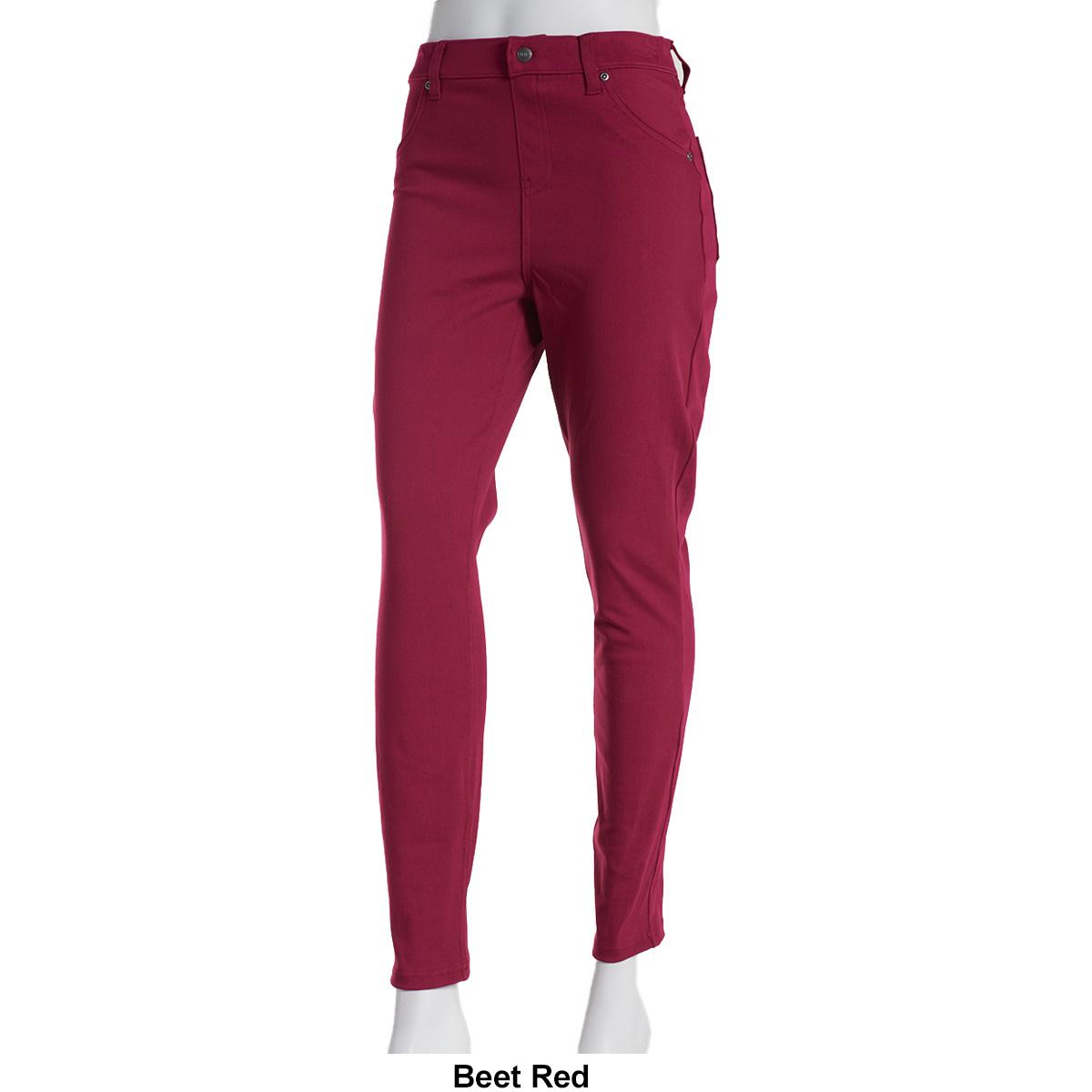 Feel at ease and fashionable with the Womens HUE® signature hi-waisted ultra-soft denim washed pull-on leggings. The stretch design offers that everyday look that can be paired with sneakers, sport casuals, or slides. Features include a novelty button, belt loops, faux pocketed front, and 2 functional back pockets.