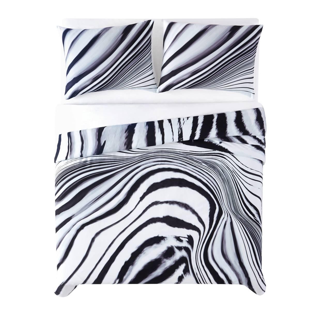 Description This Vince Camuto Muse Zebra Print Comforter Set brings a striking look into any bedroom. By combining an exciting animal print with monochrome black and white color...