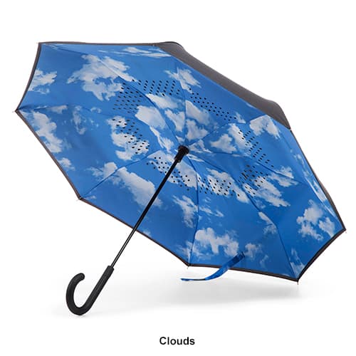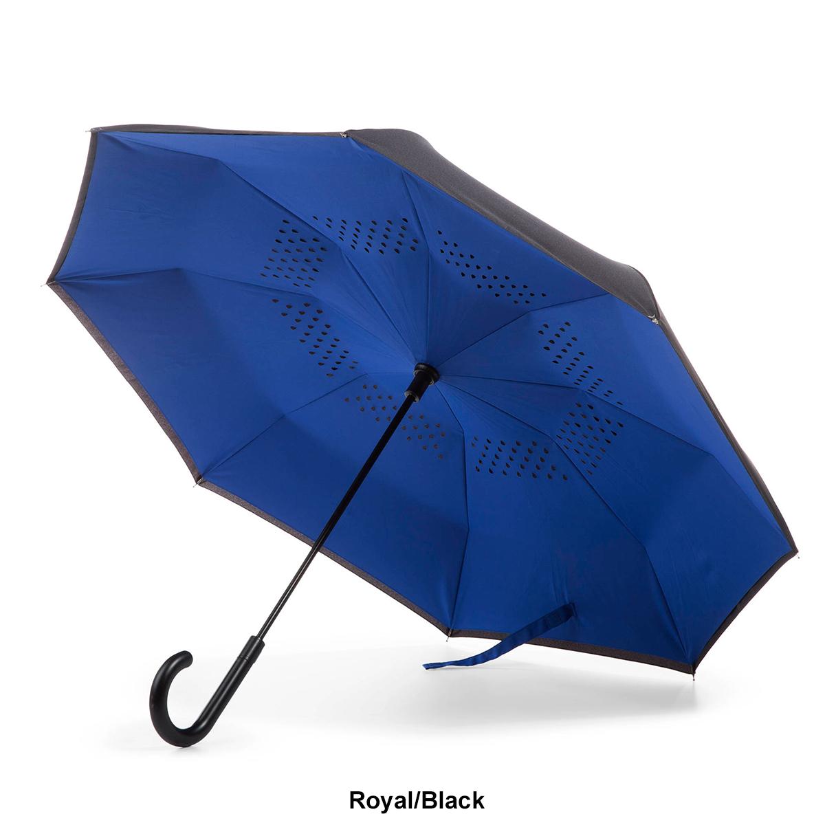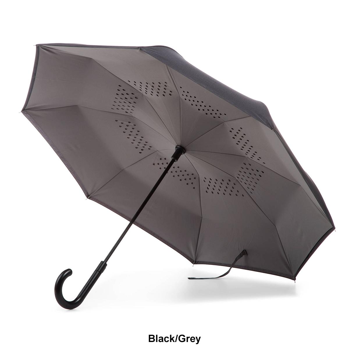 Description This Totes Inbrella reverse close umbrella has the rain roll right off the fabric so the umbrella stays dry. No more drippy mess…ever! Reverse-closes with the wet...