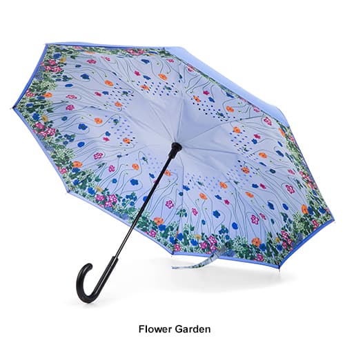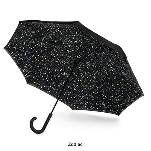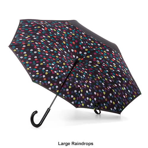 This Totes Inbrella reverse close umbrella has the rain roll right off the fabric so the umbrella stays dry. No more drippy mess…ever! Reverse-closes with the wet side away from you. Stand apart from the crowd: Sits upright all on its own. Make a fashion statement: Available in cheery under-canopy prints that demand smiles.
