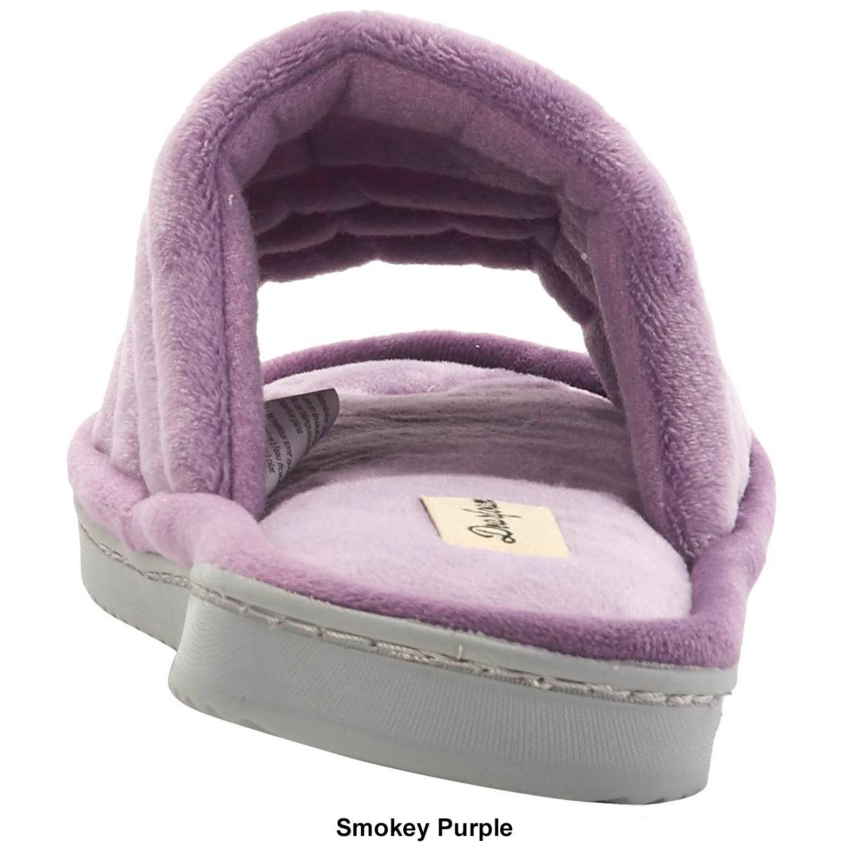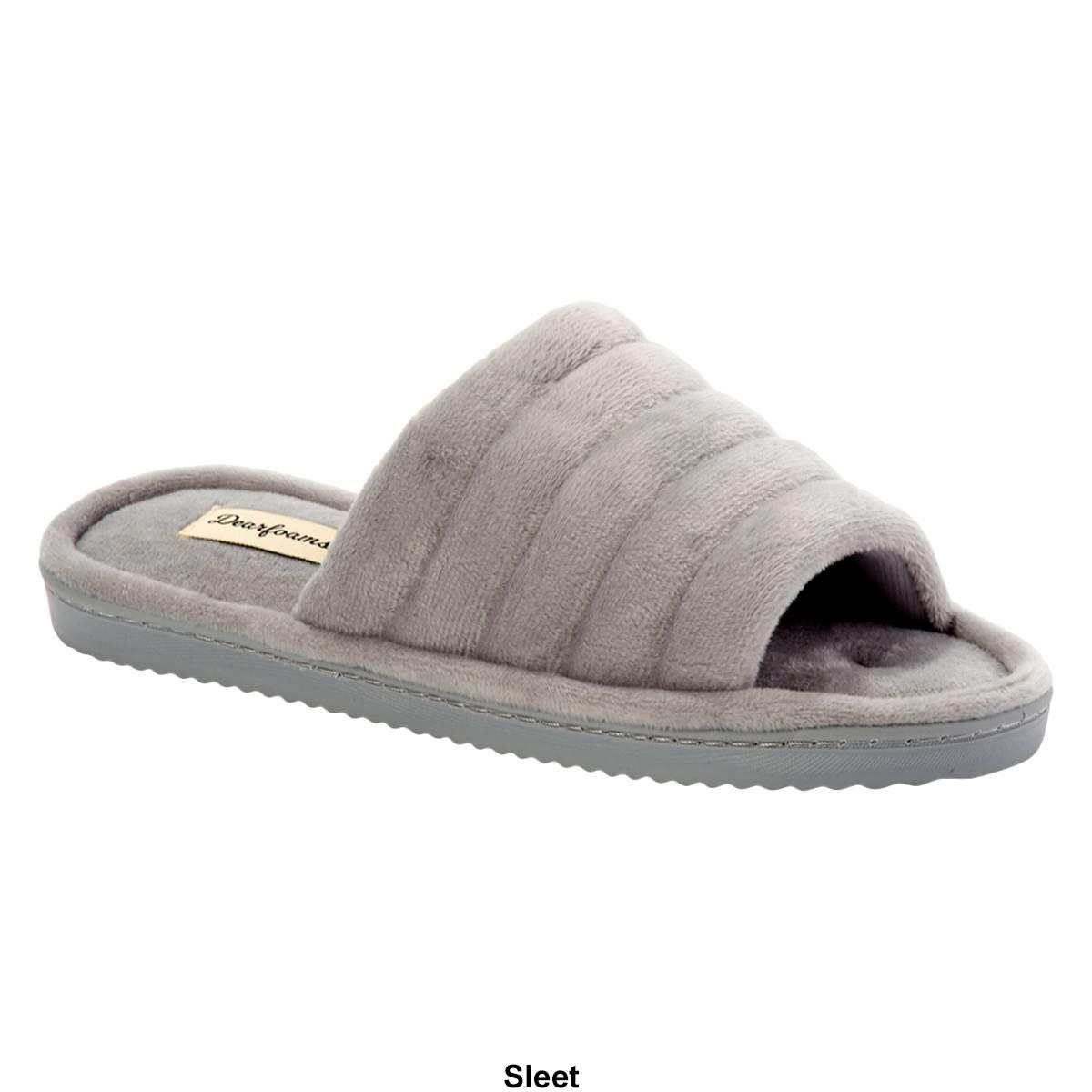 With easy on/off design and proven indoor/outdoor outsoles, these Womens Dearfoams® quilted velour slide sippers are the perfect pick to leave by the door! Whether you´re coming or going, your feet are sure to love the super soft lining and memory foam cushioning. Best of all, machine washable materials and no-sweat DF Adapt technology promise long-lasting freshness.