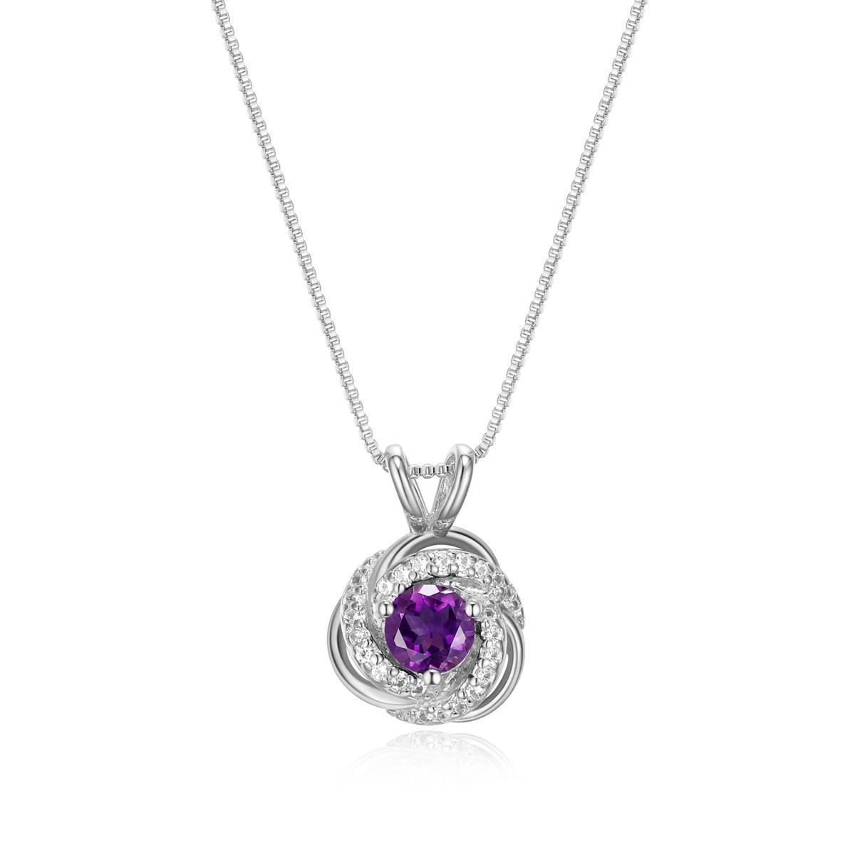 The Forever Facets necklace is handcrafted in rhodium-plated 925 sterling silver. The classic love knot style features Genuine Amethyst as February birthstone. This stunning love knot pendant necklace makes a meaningful, loving gift idea for birthdays, holidays, Mother´s Day, Valentine´s Day, bridesmaids, or any special occasion.