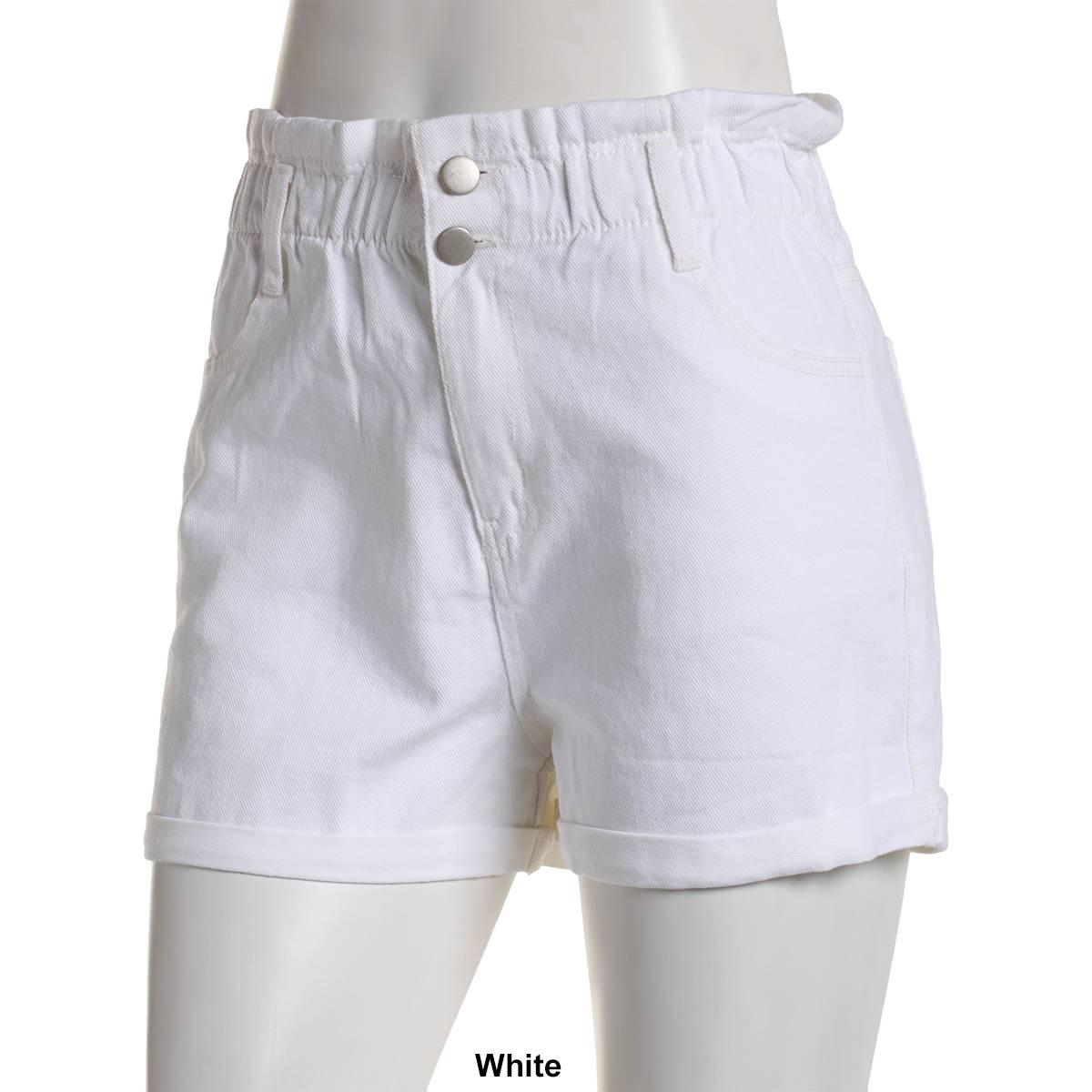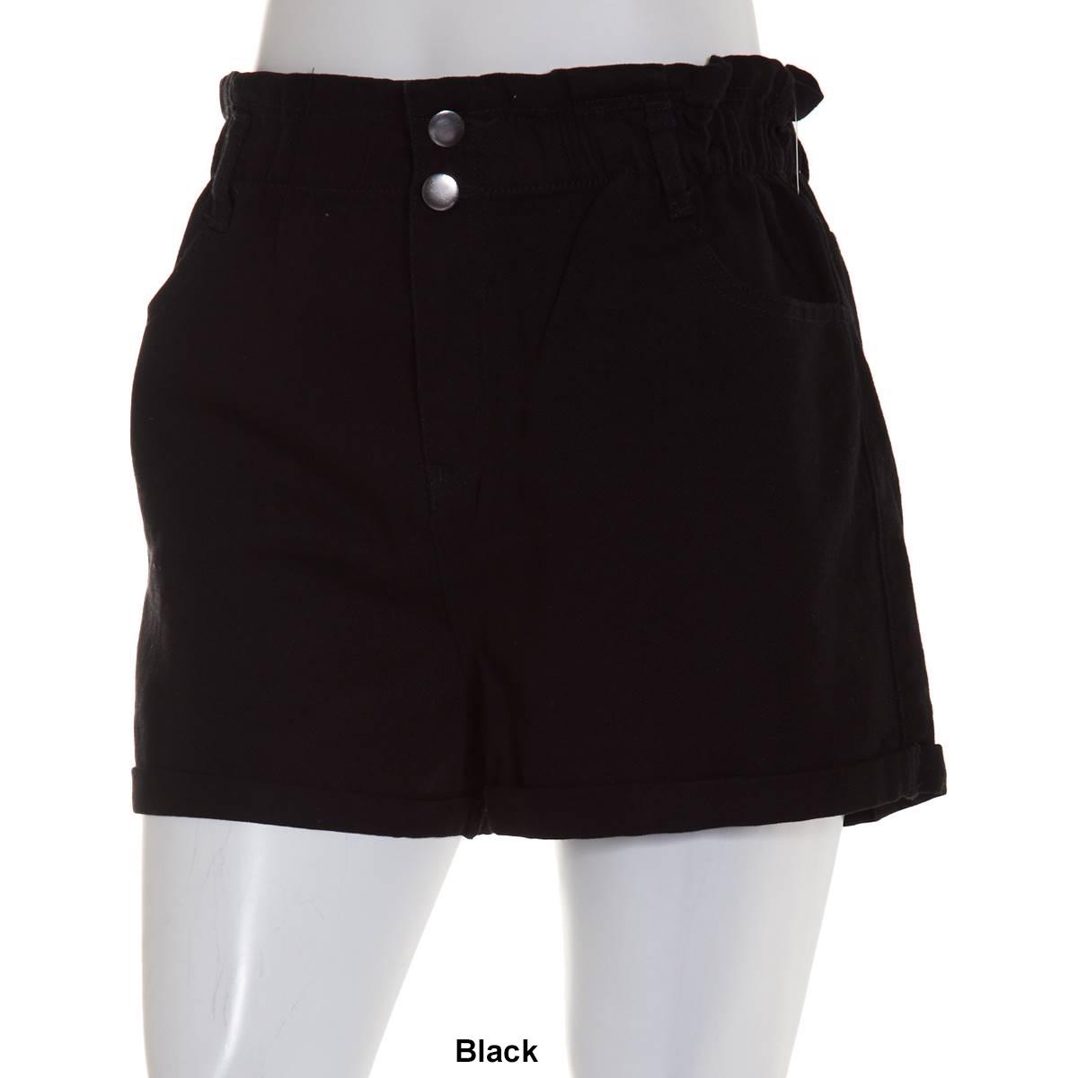 Juniors Love Tee Double Button Paperbag Waist Denim Shorts