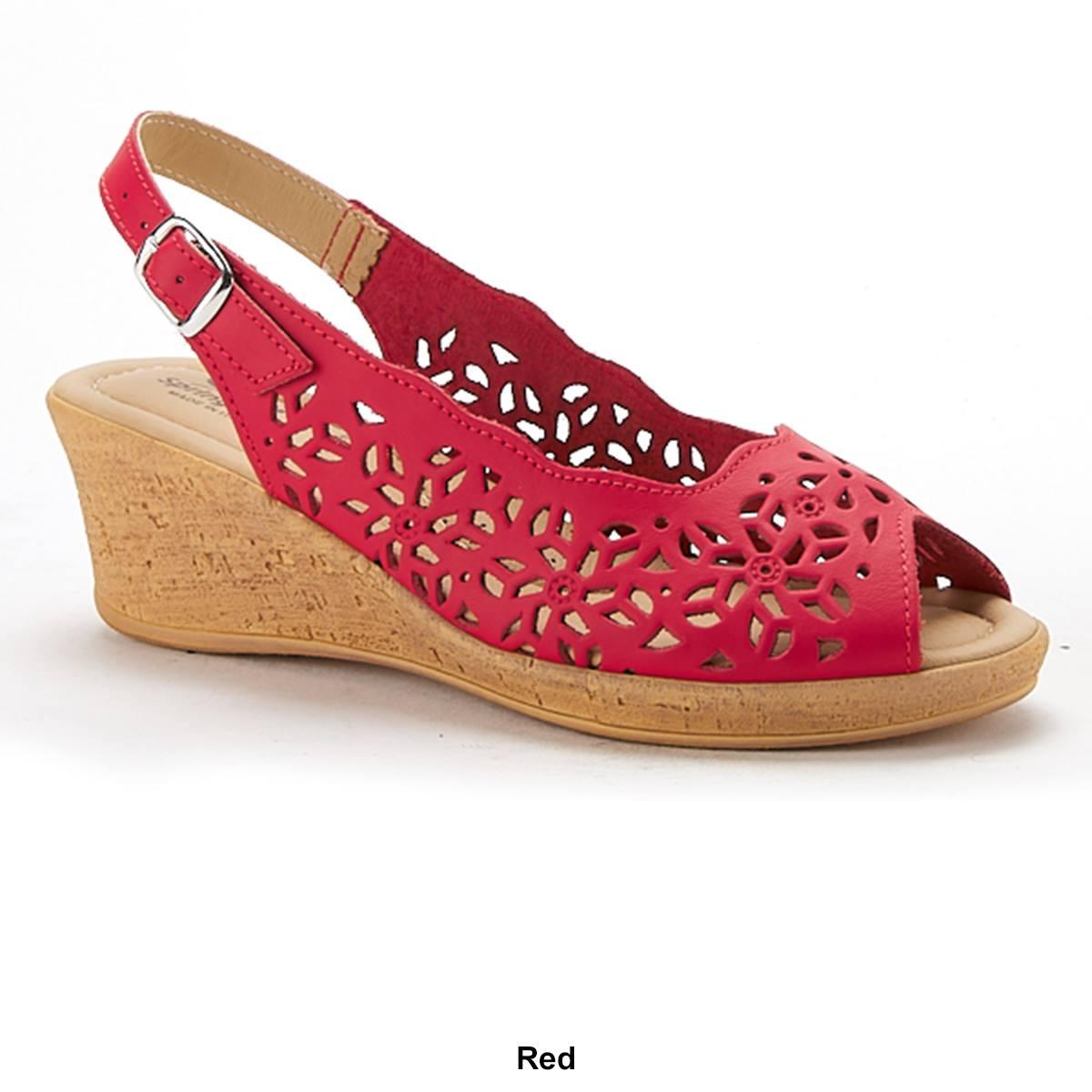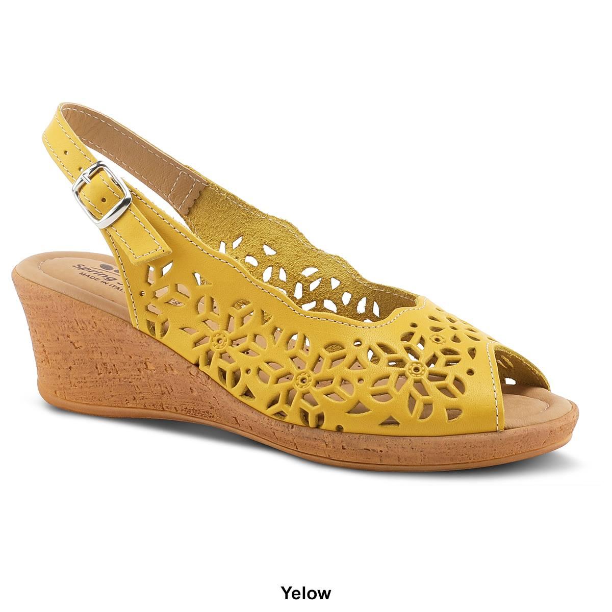 Description These Womens Spring Step Footsie slingback wedge sandals pair well with any outfit. Featuring a floral laser-cut upper and cork-inspired textured wedge for a fun...