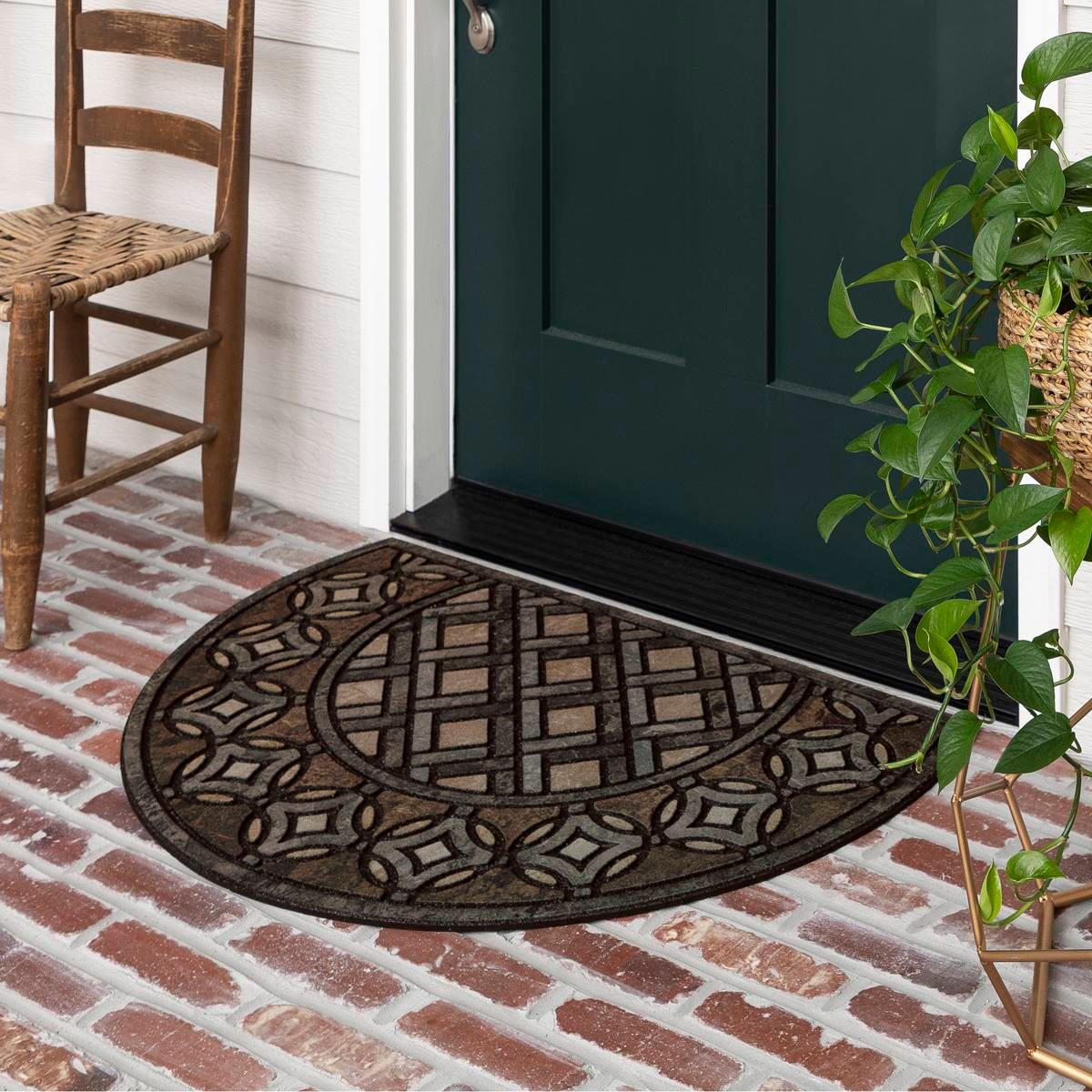 This Mohawk Home deco tile slice mosaic doormat creates elegance in any entryway with its timeless slice-shaped style. The doormat is consciously crafted on recycled rubber. It absorbs moisture and is ideal for scraping dirt from shoes before it’s tracked indoors, helping to keep your indoors beautiful too.