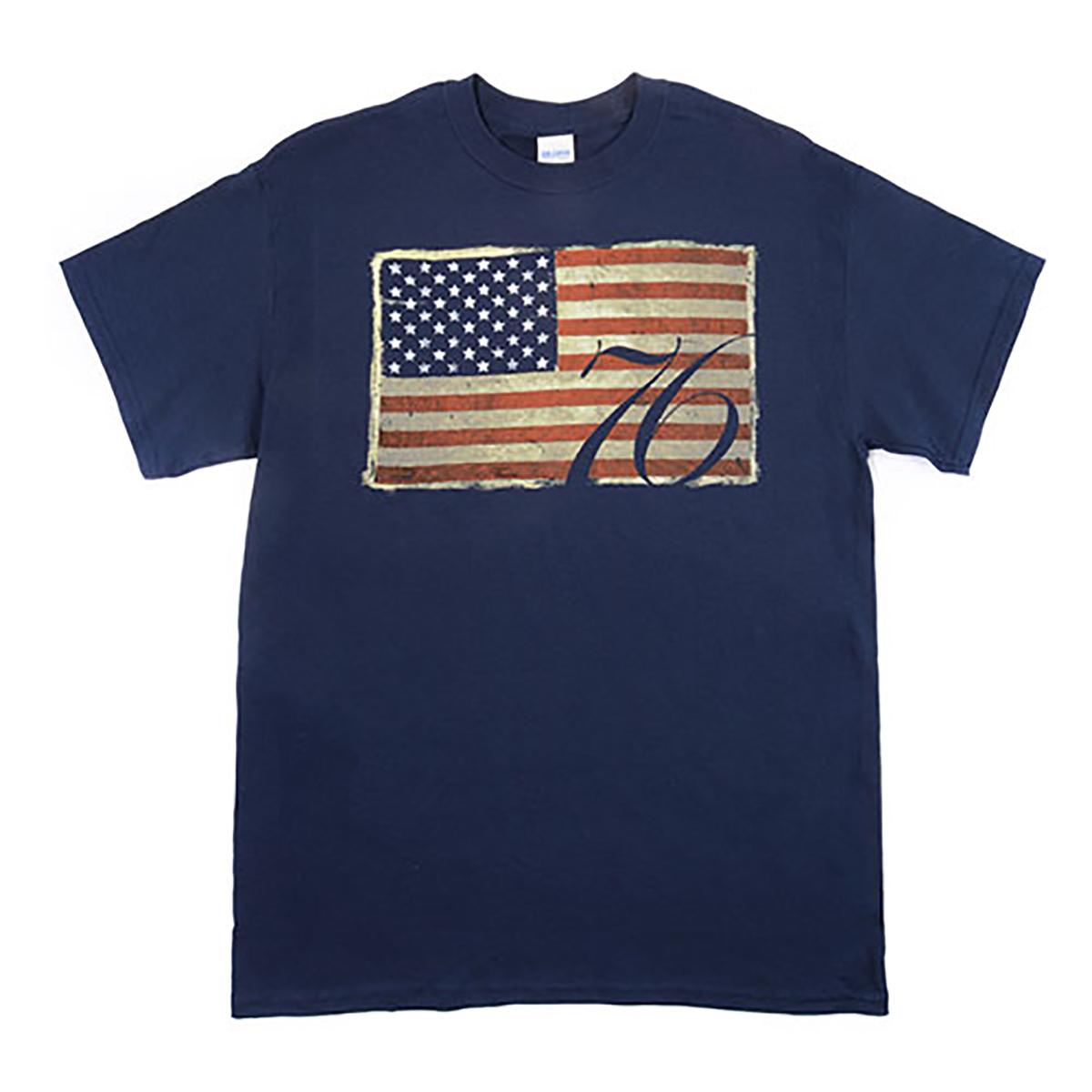 Show your festive spirit with this Mens patriotic vintage 76 flag short sleeve graphic t-shirt. The tee features short sleeves, a crew neckline, and a flag graphic.
