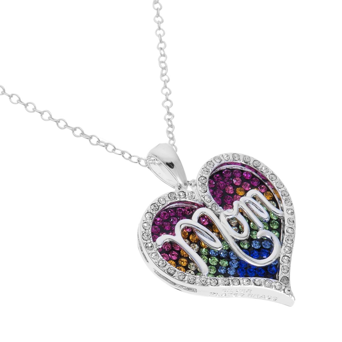 Description Show mom how much she means to you with this Brass silver-plated multi-crystal Mom 18-inch pendant necklace. Chain Length: 18"Pendant Size: 1.19"L x 0.90"W x 0.17"H...