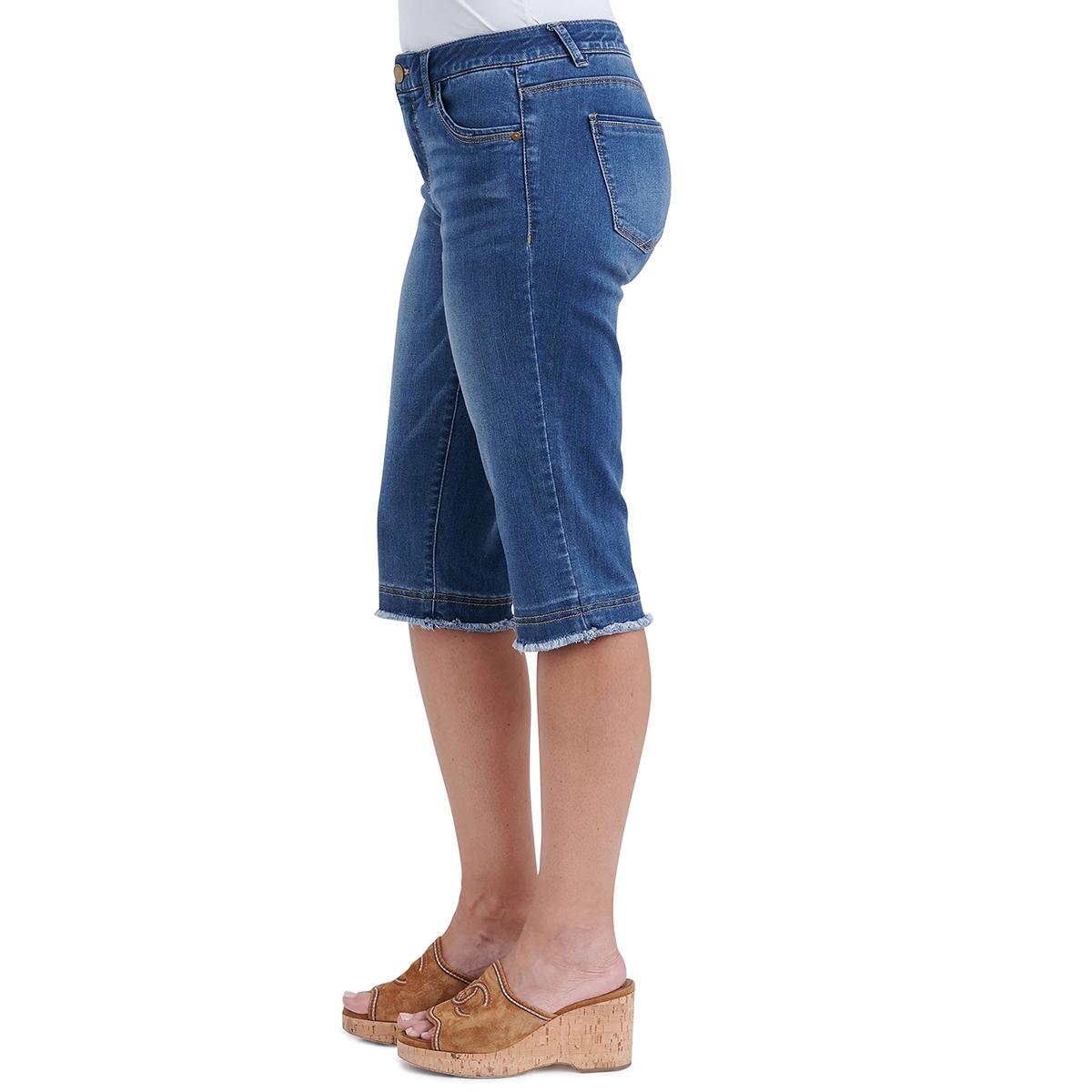 Description Leg Style: StraightRise Mid RiseFray hemFunctional pocketsSingle button zipper closure Inseam: 16 " Care: Machine Wash, Tumble Dry Material: Cotton, Rayon, Spandex...