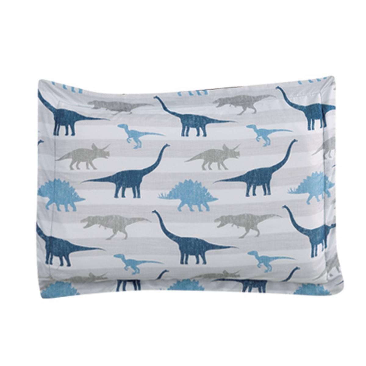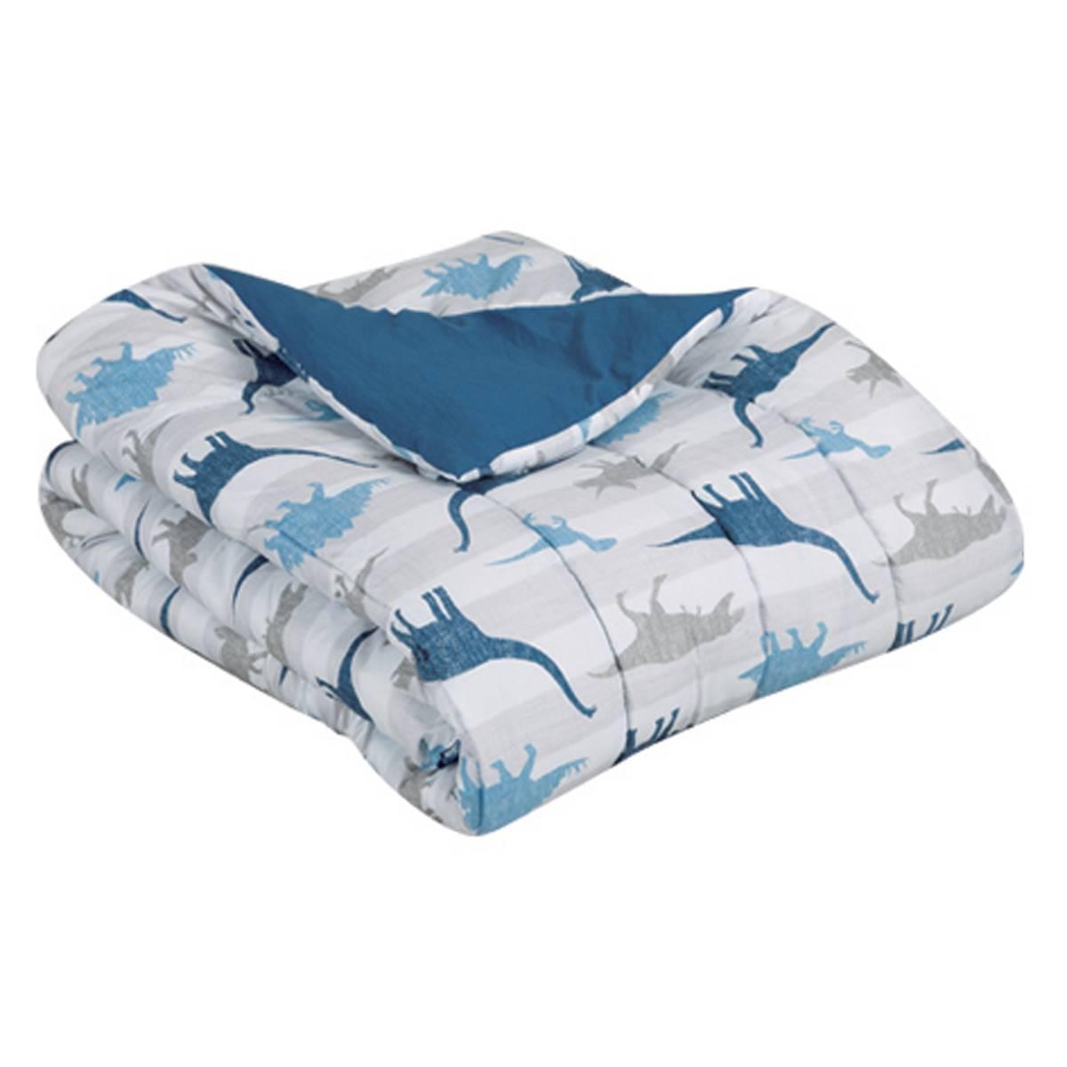 Description Prehistoric dinosaur silhouettes in shades of blue trail upon grey and white stripes for this Alex & Bella Dino Print Microfiber Comforter Set. The printing technique...