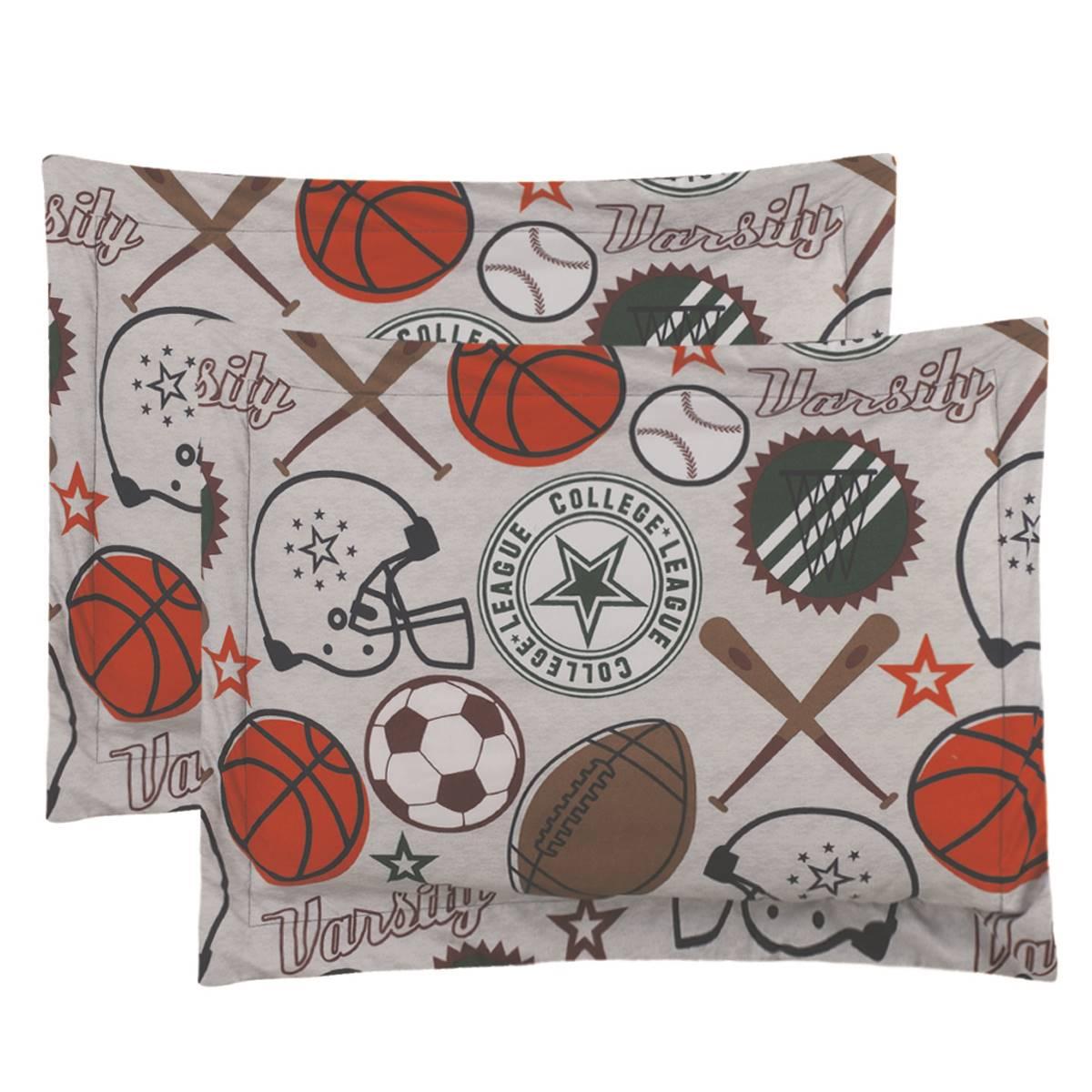 Win the decorating game with this Alex & Bella League Sports Microfiber Comforter Bedding Set. The grey background gives this four-piece set a neutral base while letting colorful sports motifs stand out, and the soft, machine-washable microfiber comforter features a reversible design with a solid navy backing for a versatile display.