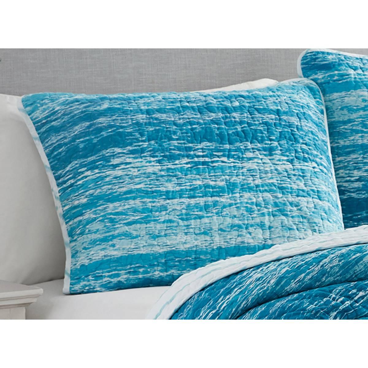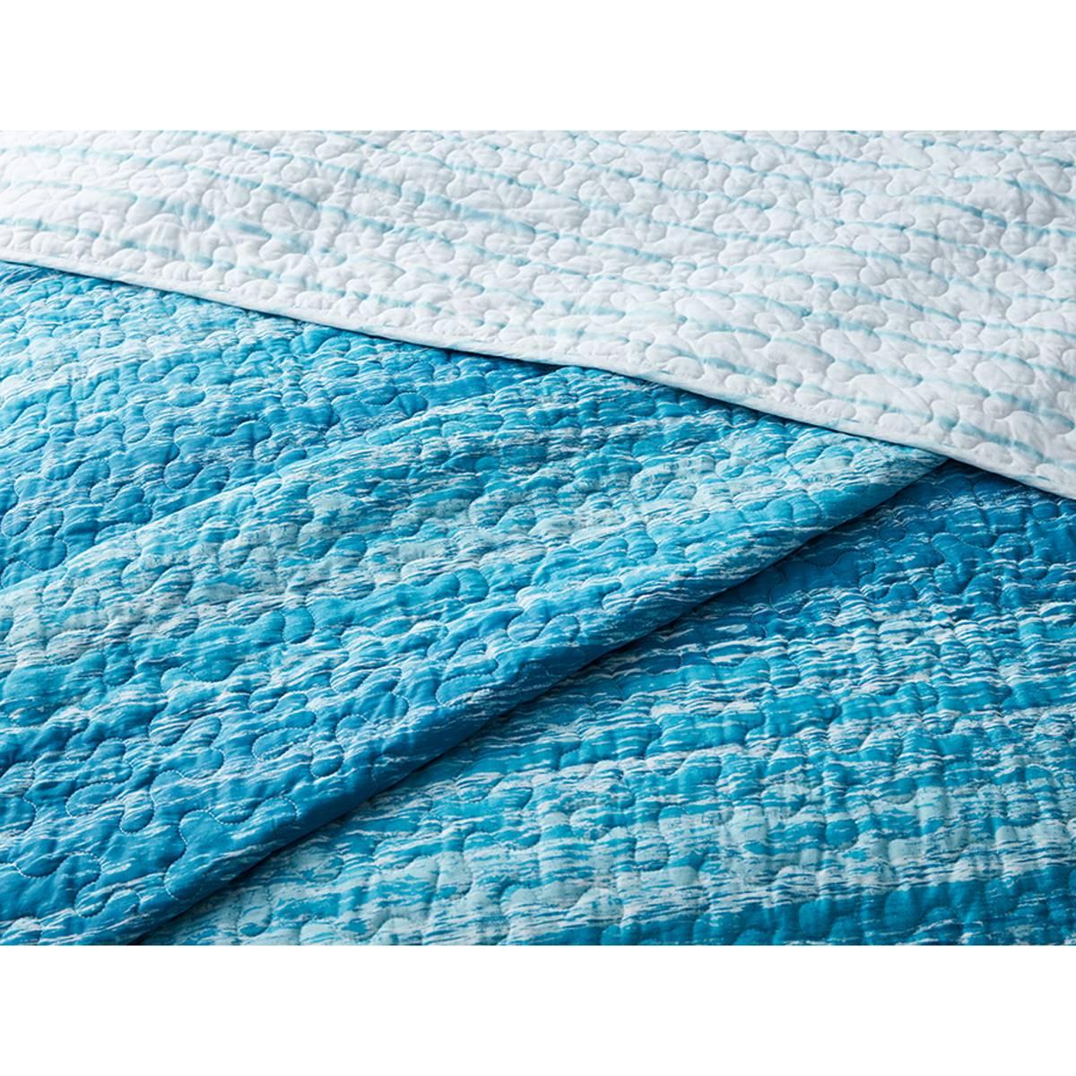 Refresh your bedroom with the Design Studio Ocean Stripe Quilt Bedding Set. This modern take on a coastal theme features a unique watercolor stripe that´s reminiscent of calming ocean waves. The shades of blue and turquoise will brighten your day. This quilt reverses to a cool white and turquoise painted watercolor stripe.