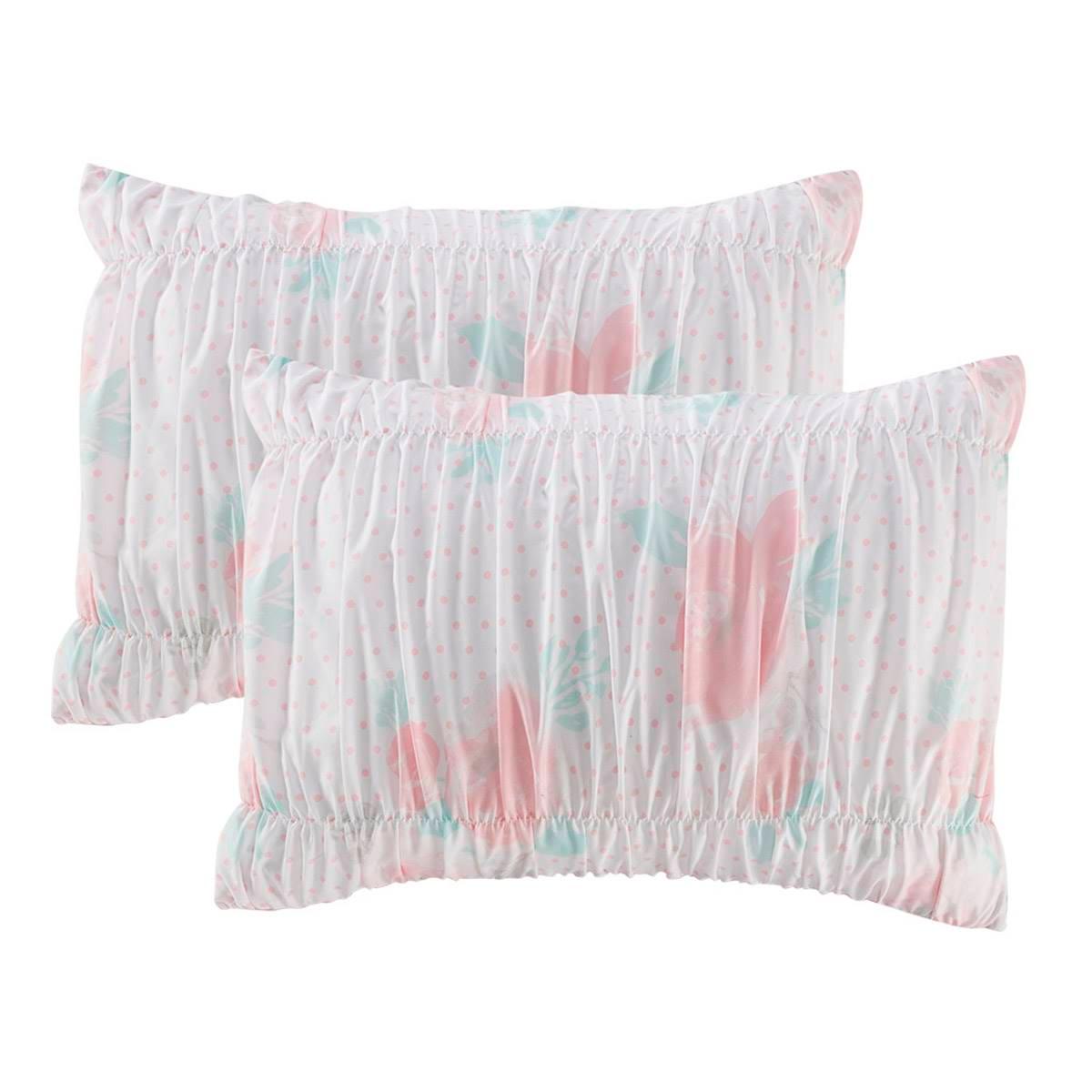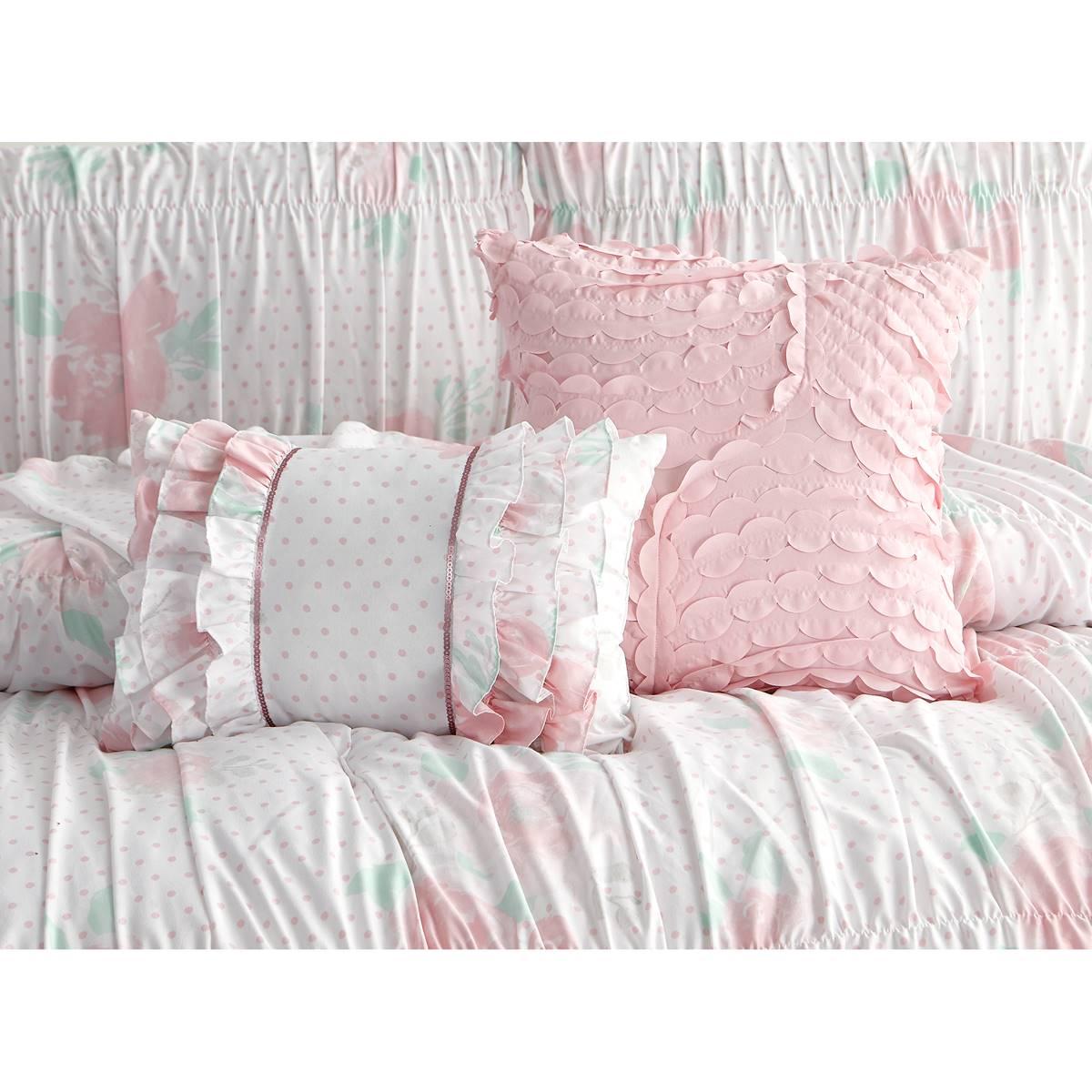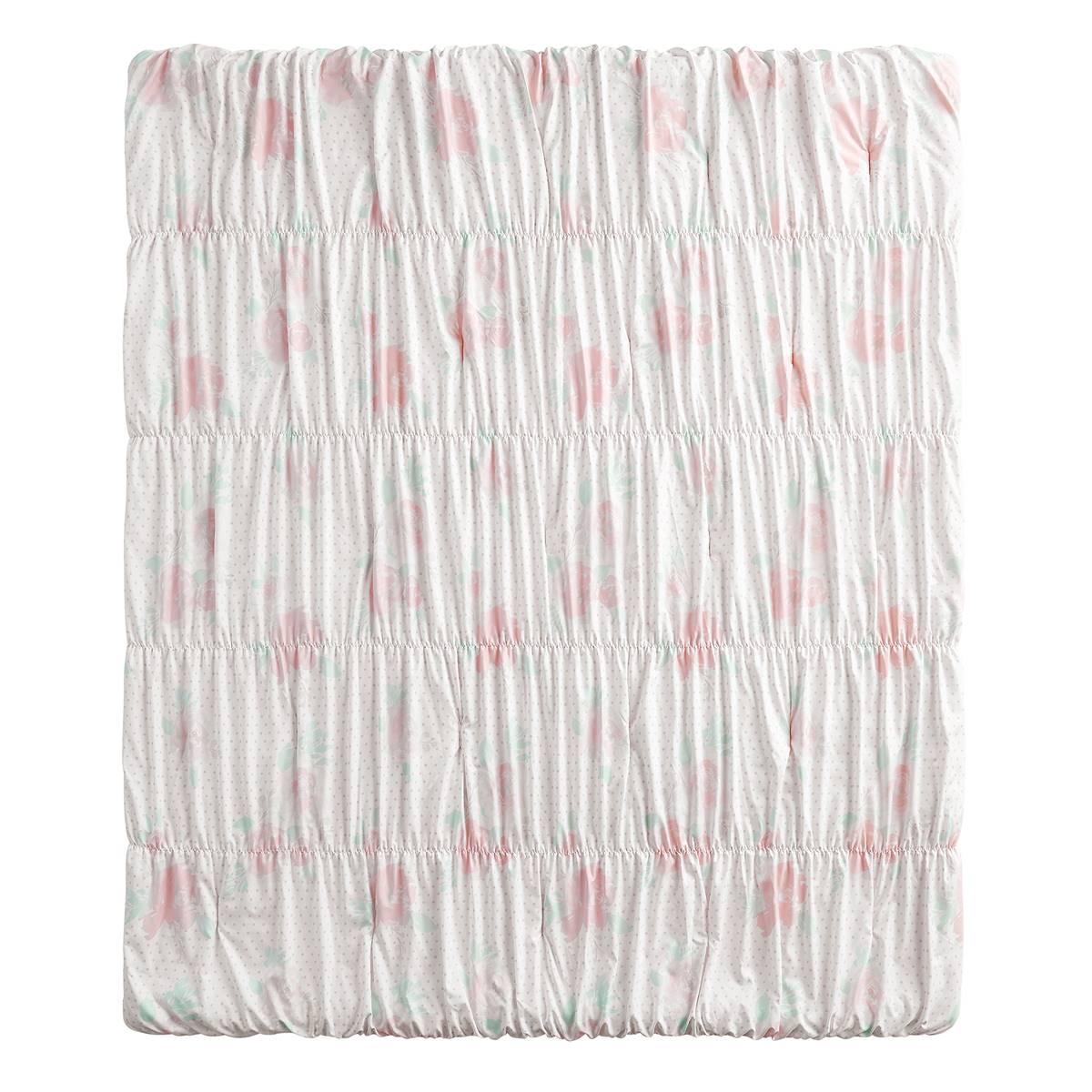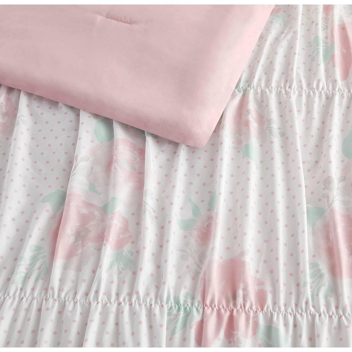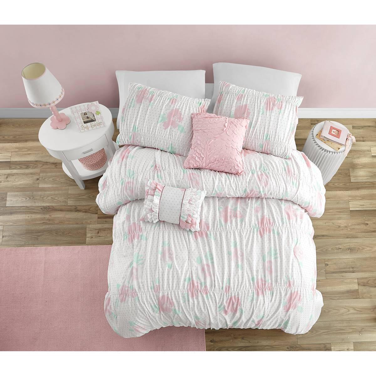Visually stunning, the Alex & Bella Tabitha Smocked Microfiber Comforter Bedding Set will add a beautiful focal point to any bedroom. The watercolor floral and polka dot pattern is colored in soft shades of pink and aqua on white ground. The comforter and shams feature smocking details.