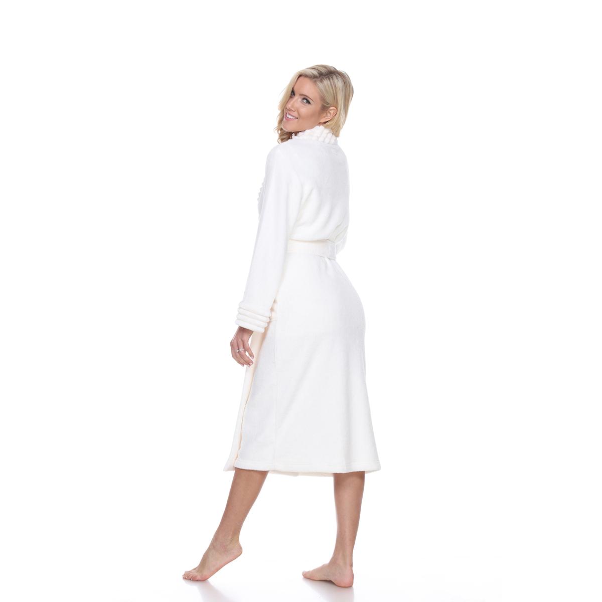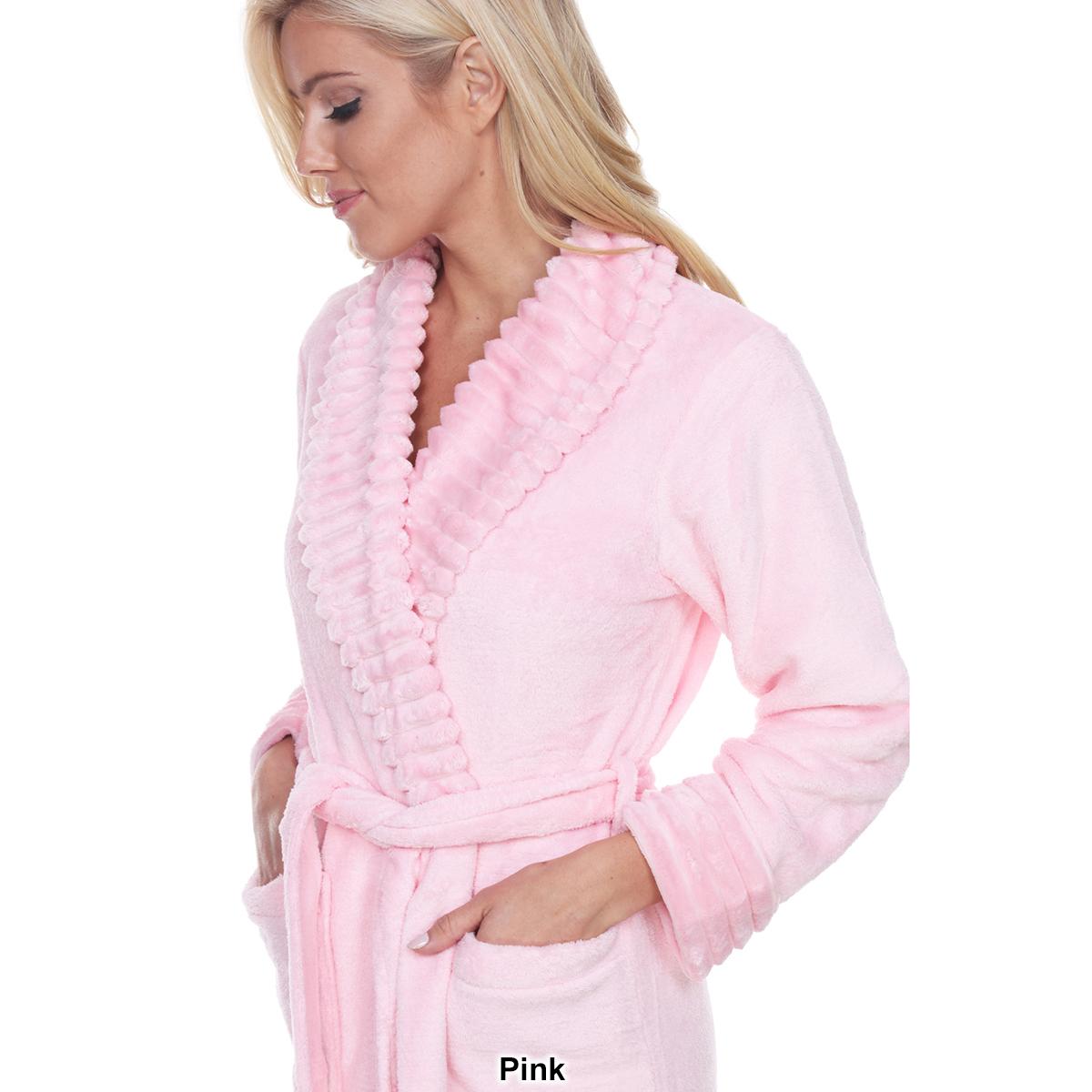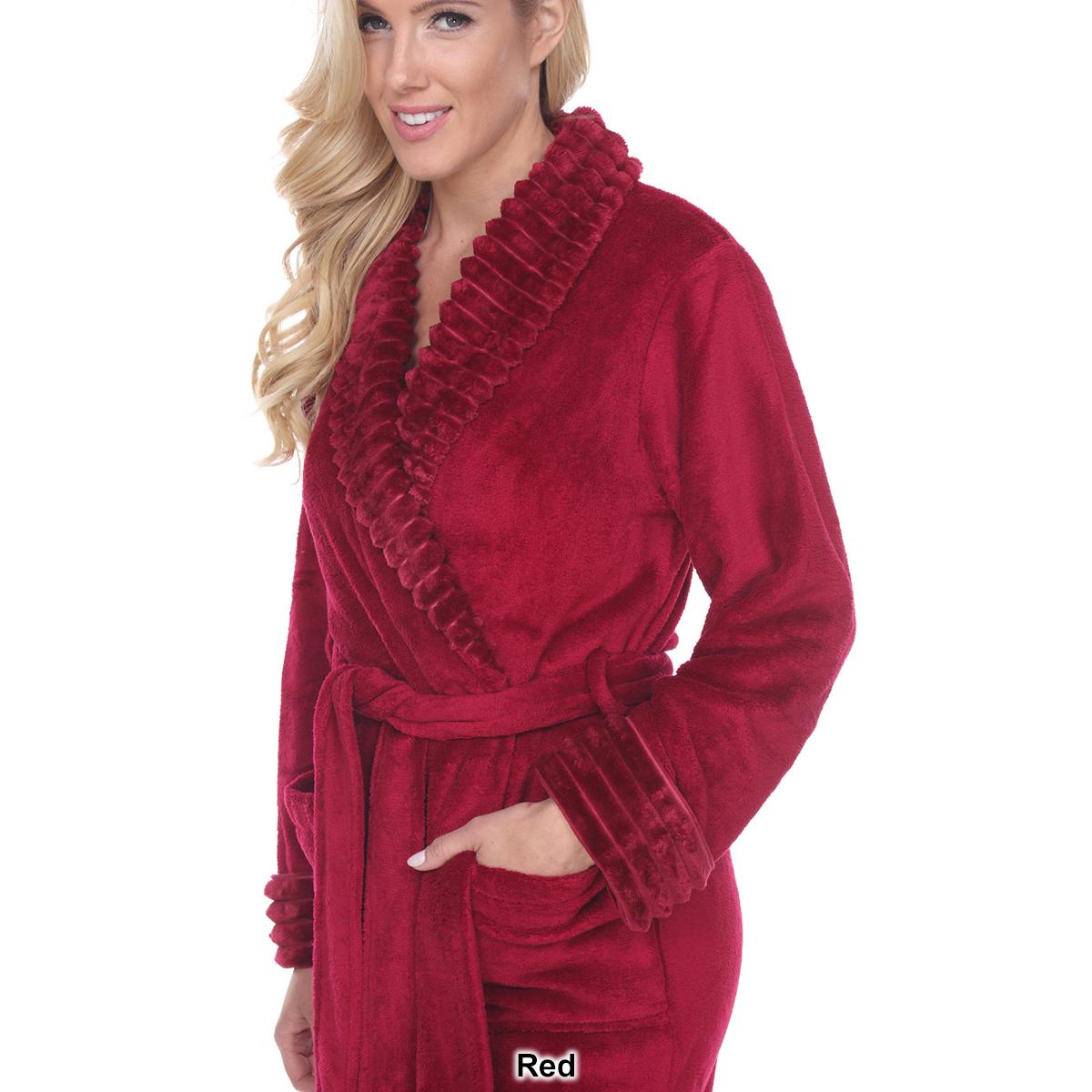 Description Irresistibly soft to the touch, this womens White Mark Super Soft long lounge robe delivers cozy comfort. With a ruffled collar and cuffs, 2 front pockets, and a...