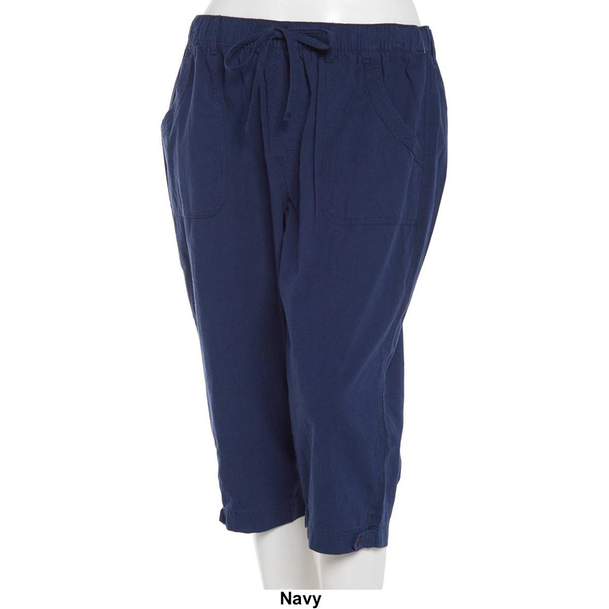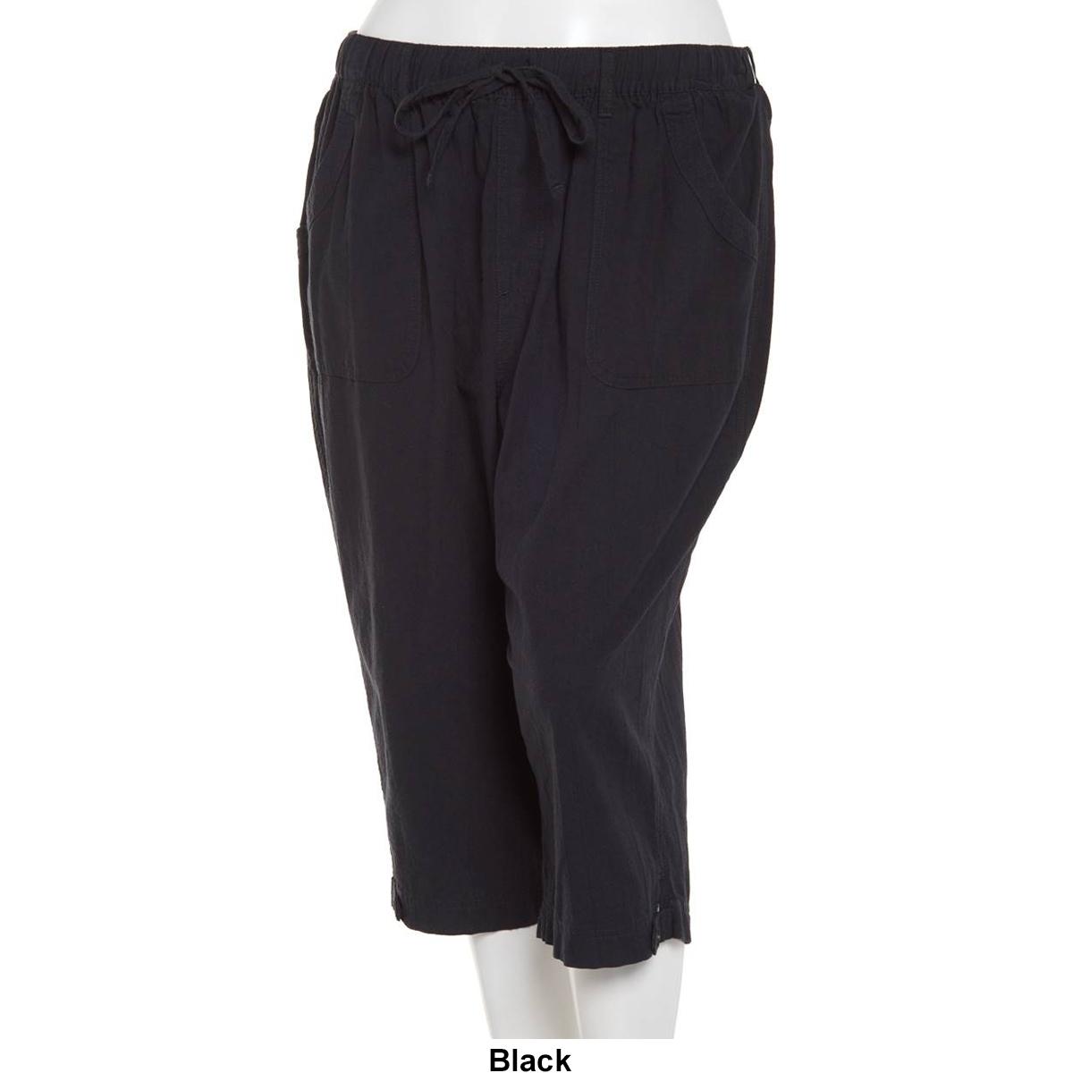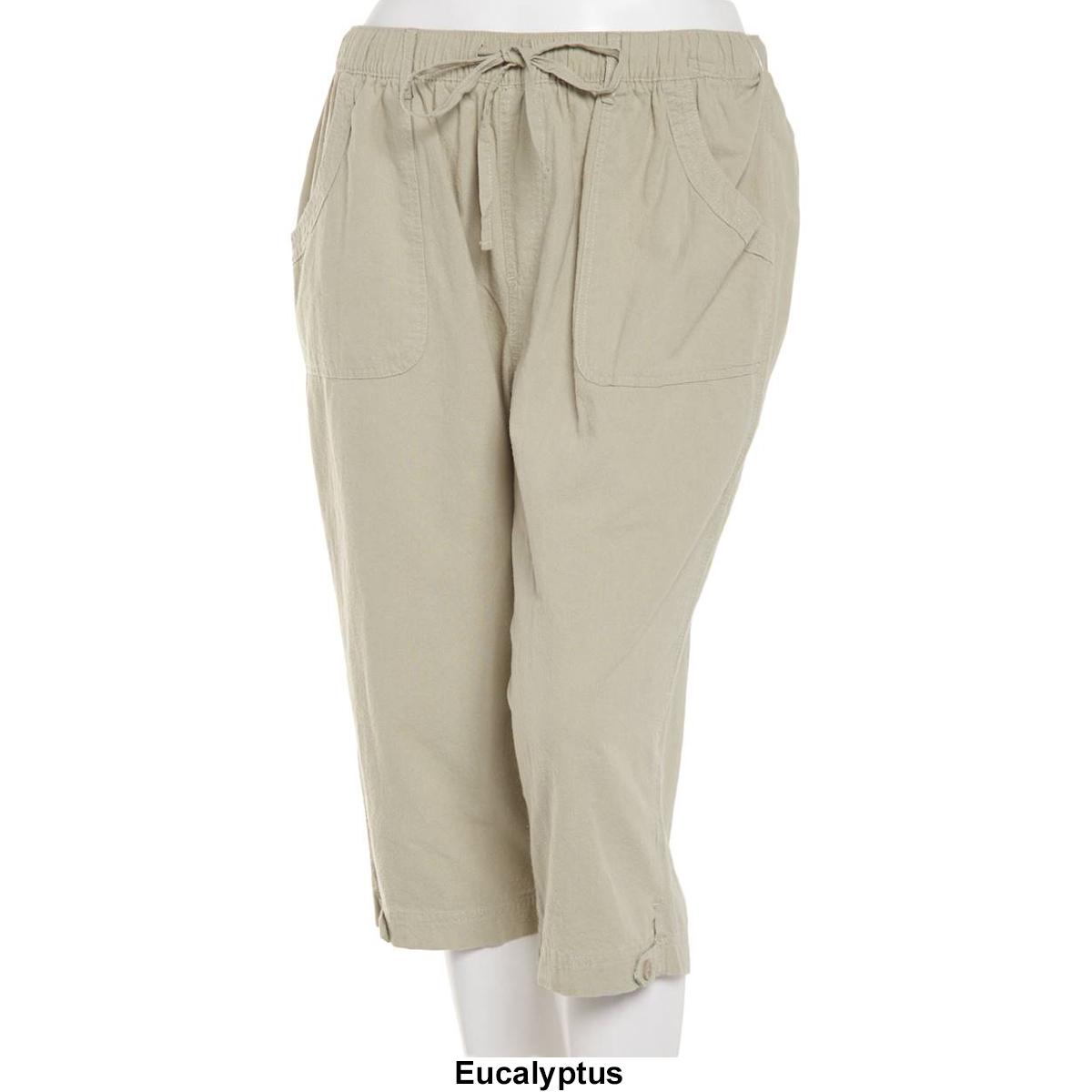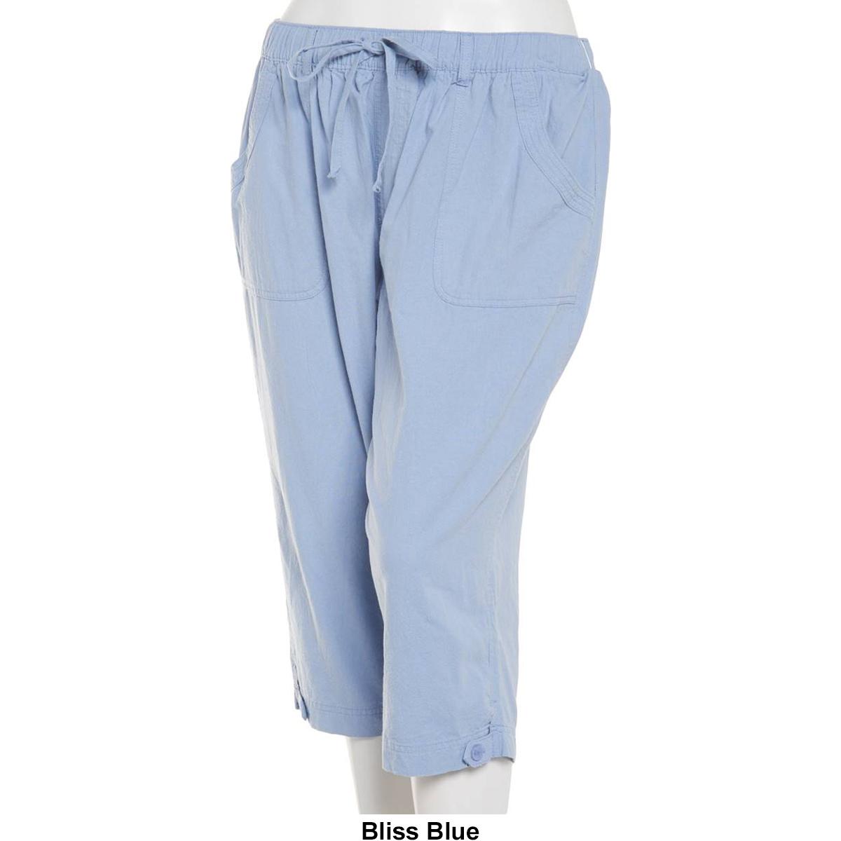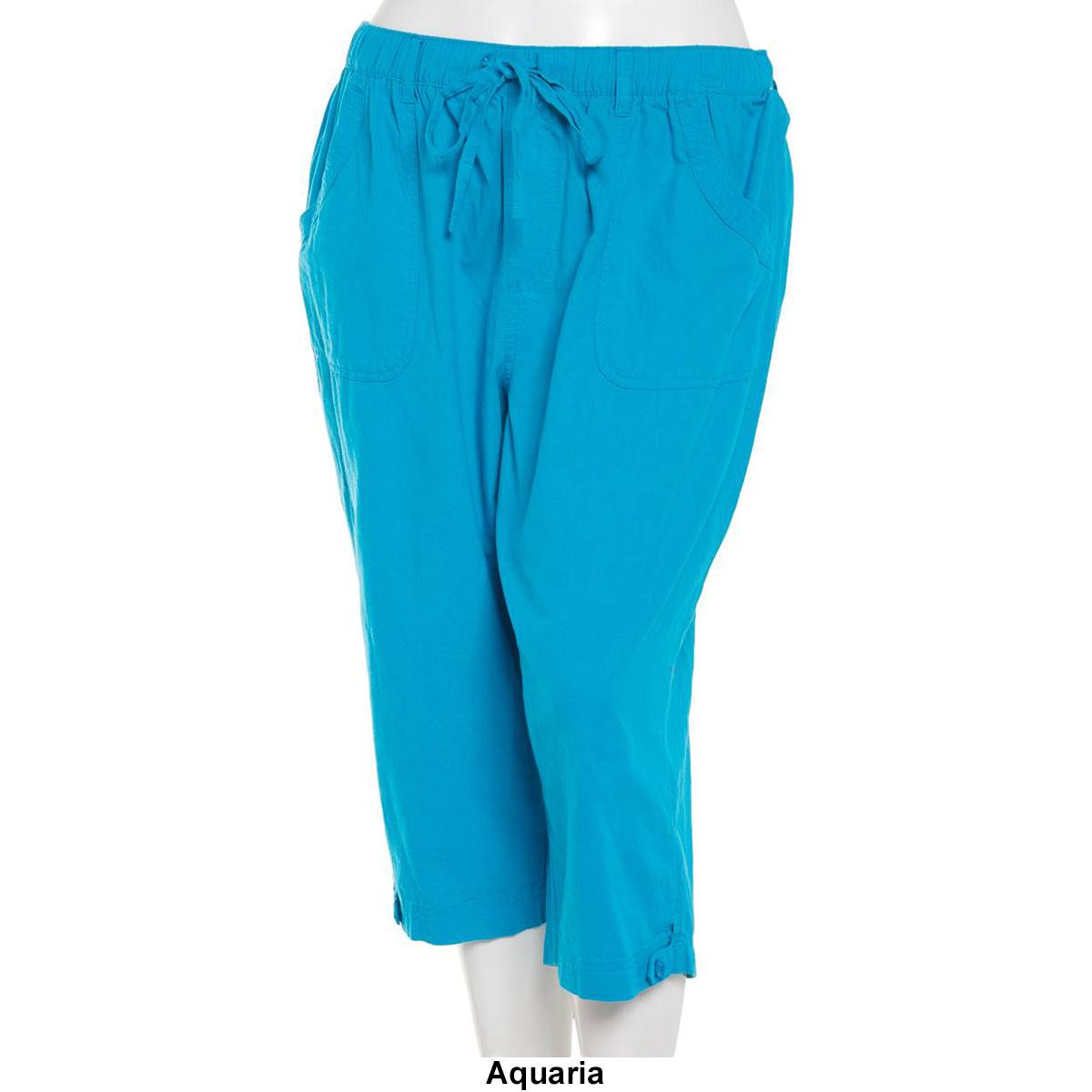 Add thesse Plus Size Erika Blair side snap sheeting capris to your summer wardrobe. This features a drawstring waist and pockets.