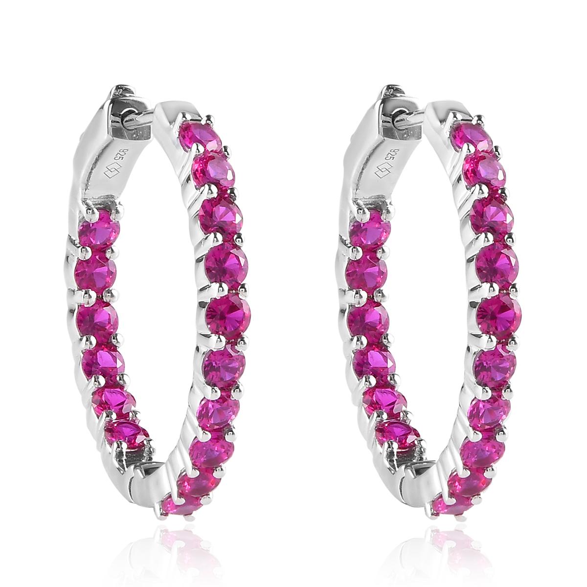 Description Complete your outfits with these stunning Gemstone Classics™ 3mm round created ruby inside out hoop earrings in sterling silver. Material: Ruby, Sterling Silver...
