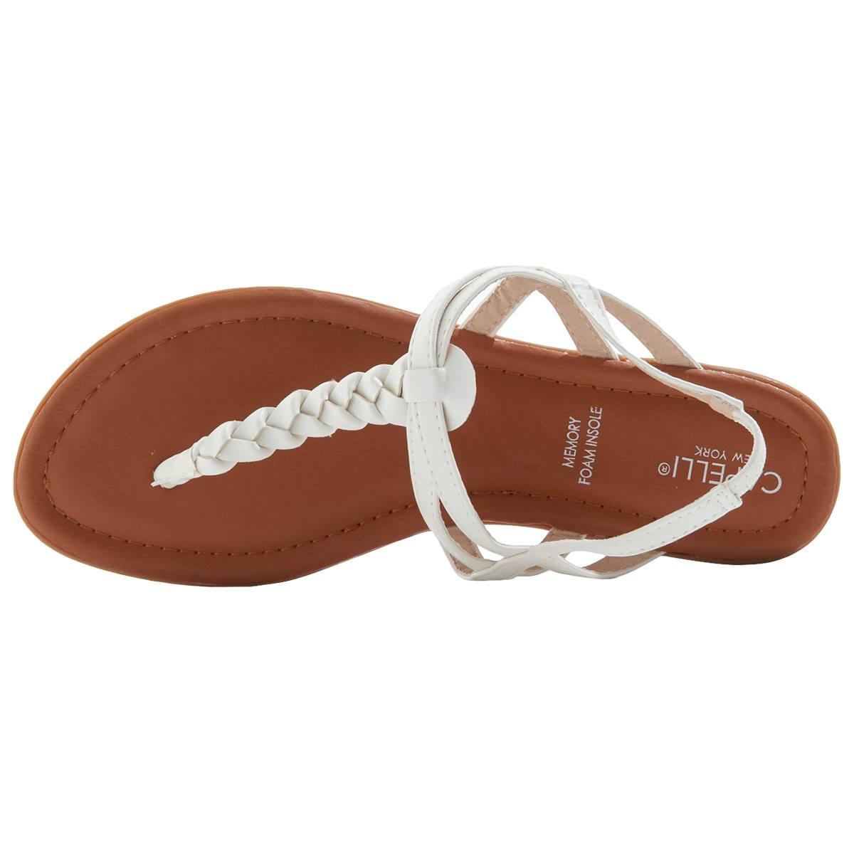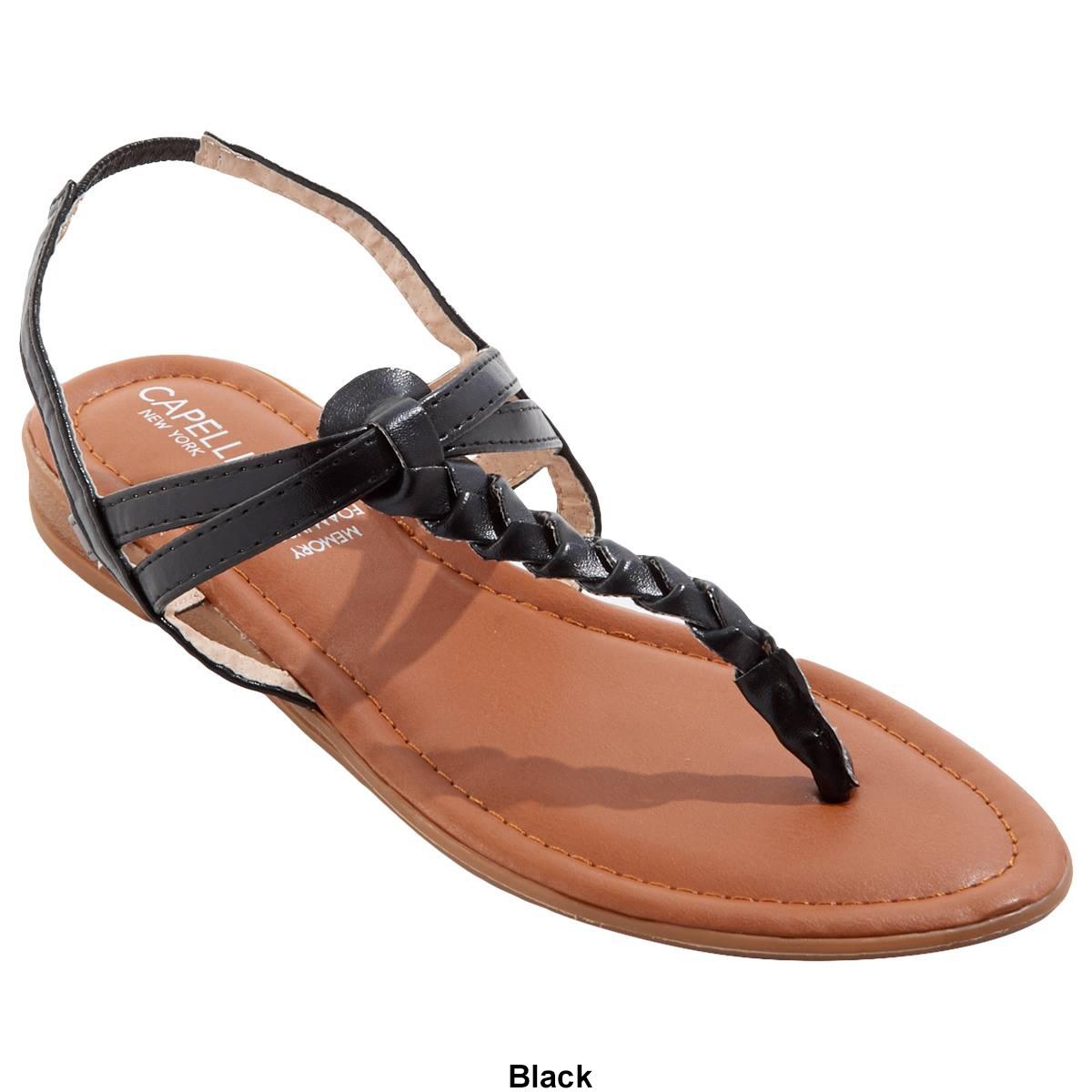Description Comfort meets style in the Womens Capelli New York faux leather braided thong sandals. These slip-on shoes feature an elastic back ankle strap and a cushioned memory...