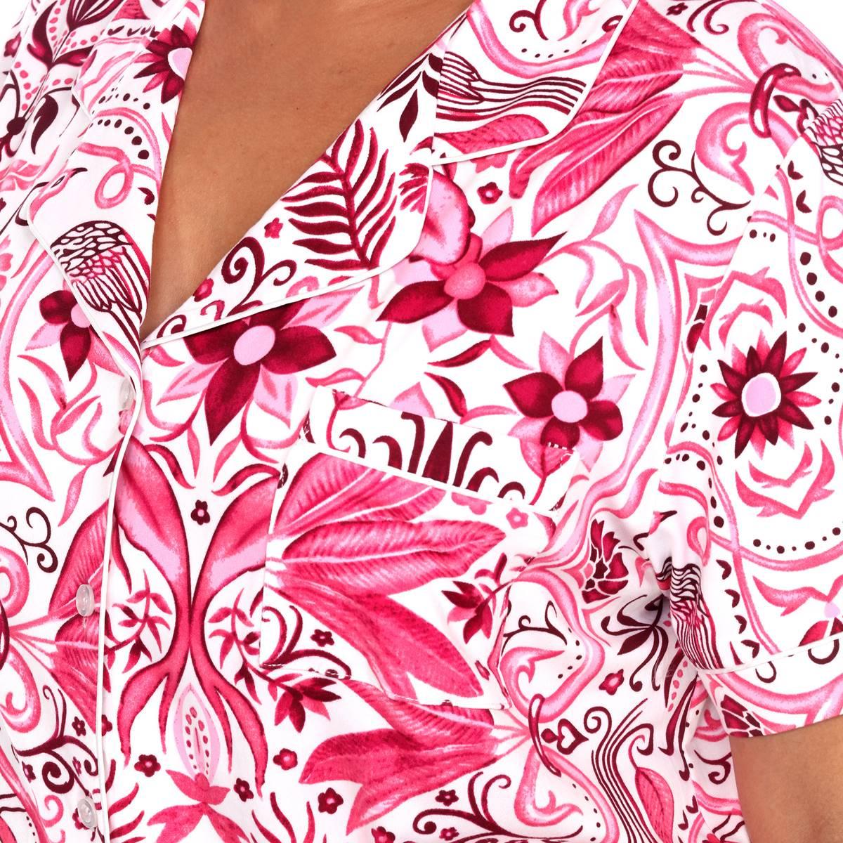 Plus Size White Mark 2pc. Short Sleeve Tropical Pajama Set