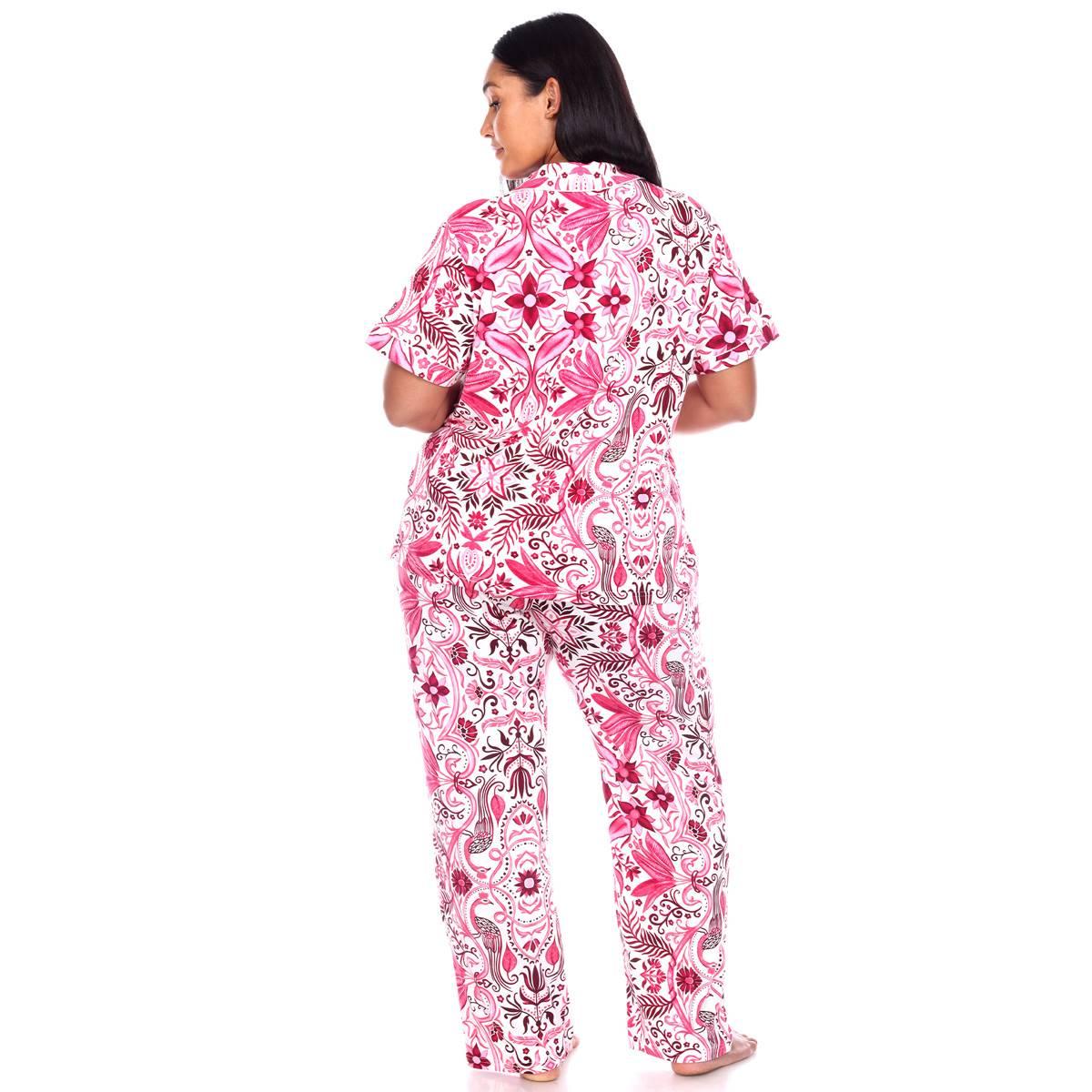 Description Sweet dreams start with cute pajamas! This Plus Size White Mark 2-piece tropical peacock pajama set is great for comfortably lounging on lazy weekends or getting...