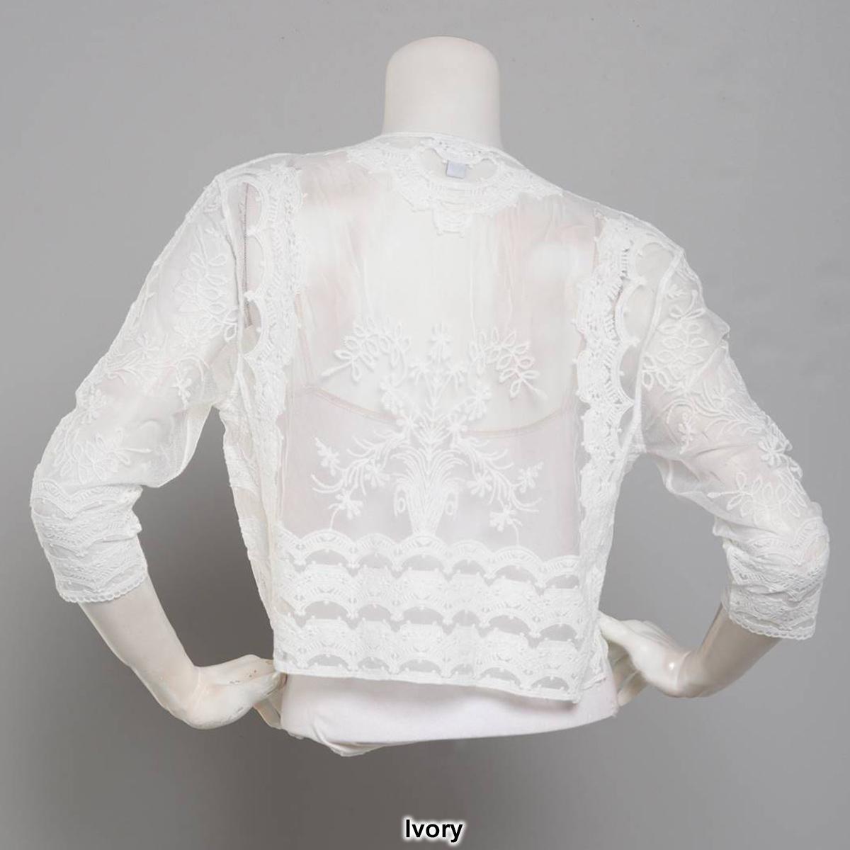 Womens Nina Leonard 3/4 Sleeve Embroidered Sheer Shrug