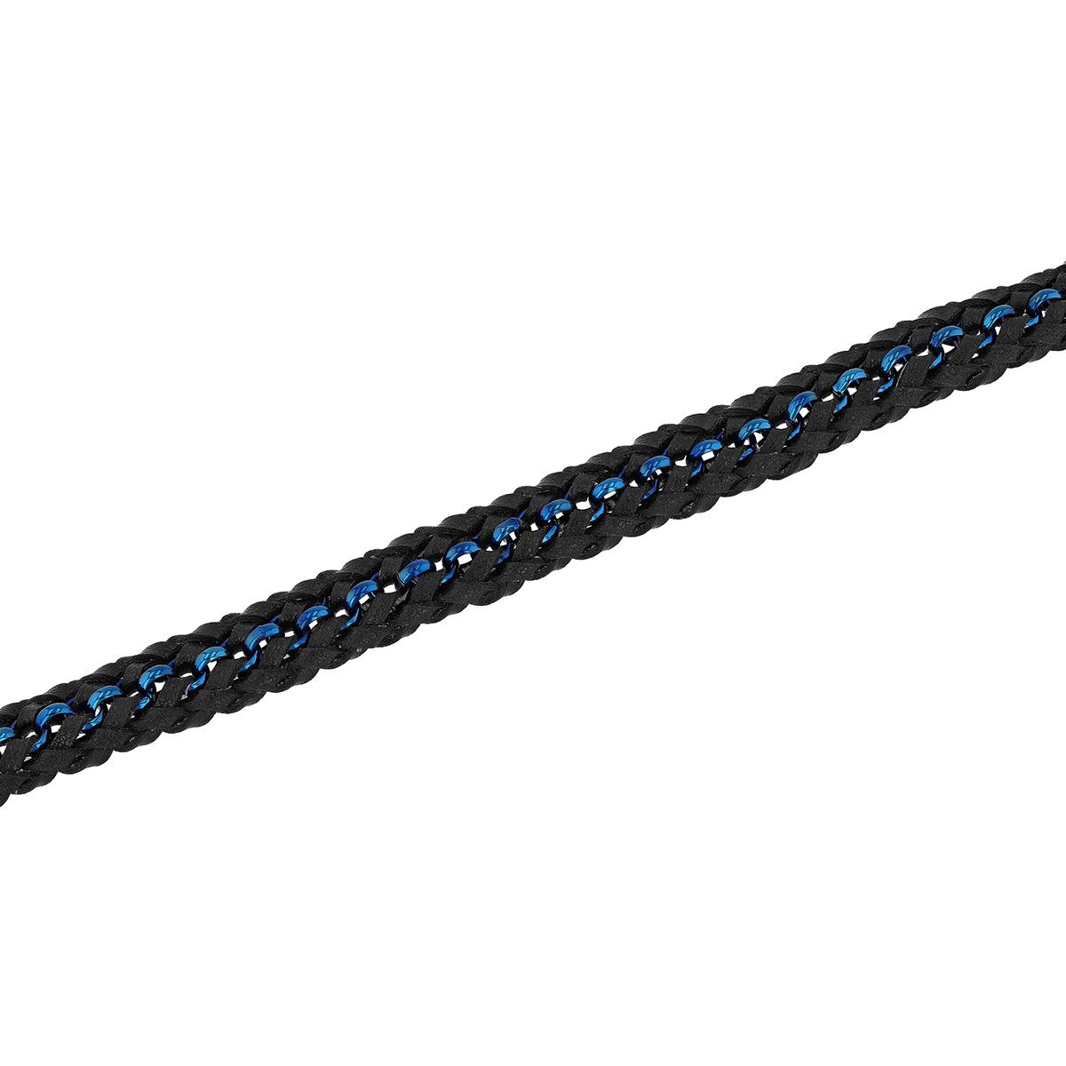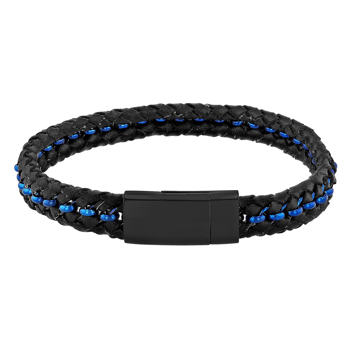 Pick something different in this Mens Gentlemen´s Classics™ black synthetic leather and blue stainless steel link bracelet. Blue ion-plated links are interwoven with braided black leather strands to create this unique men´s fashion piece.