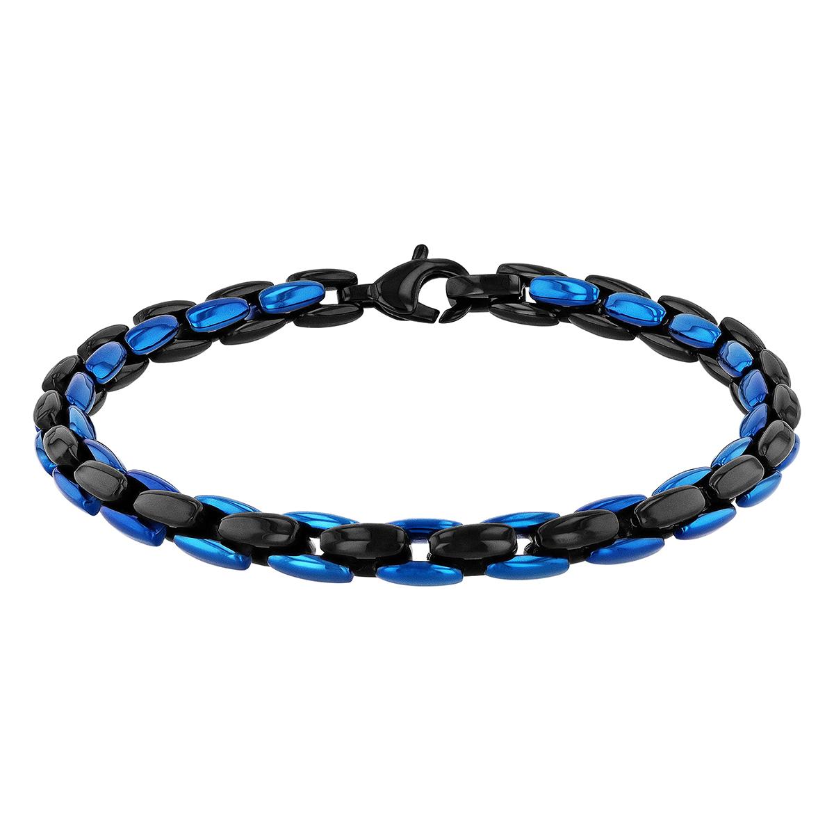 Surprise him with this edgy Mens Gentlemen´s Classics™ blue and black stainless steel link bracelet to finish his casual look. The polished 8.5-inch jewelry piece is secured with a lobster claw clasp for everyday wear. Stainless steel is tarnish-resistant and hypoallergenic.