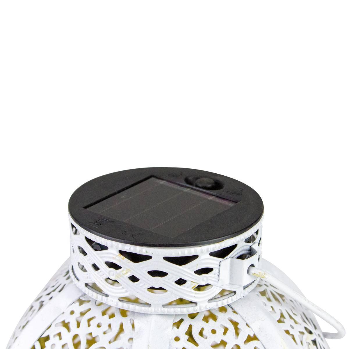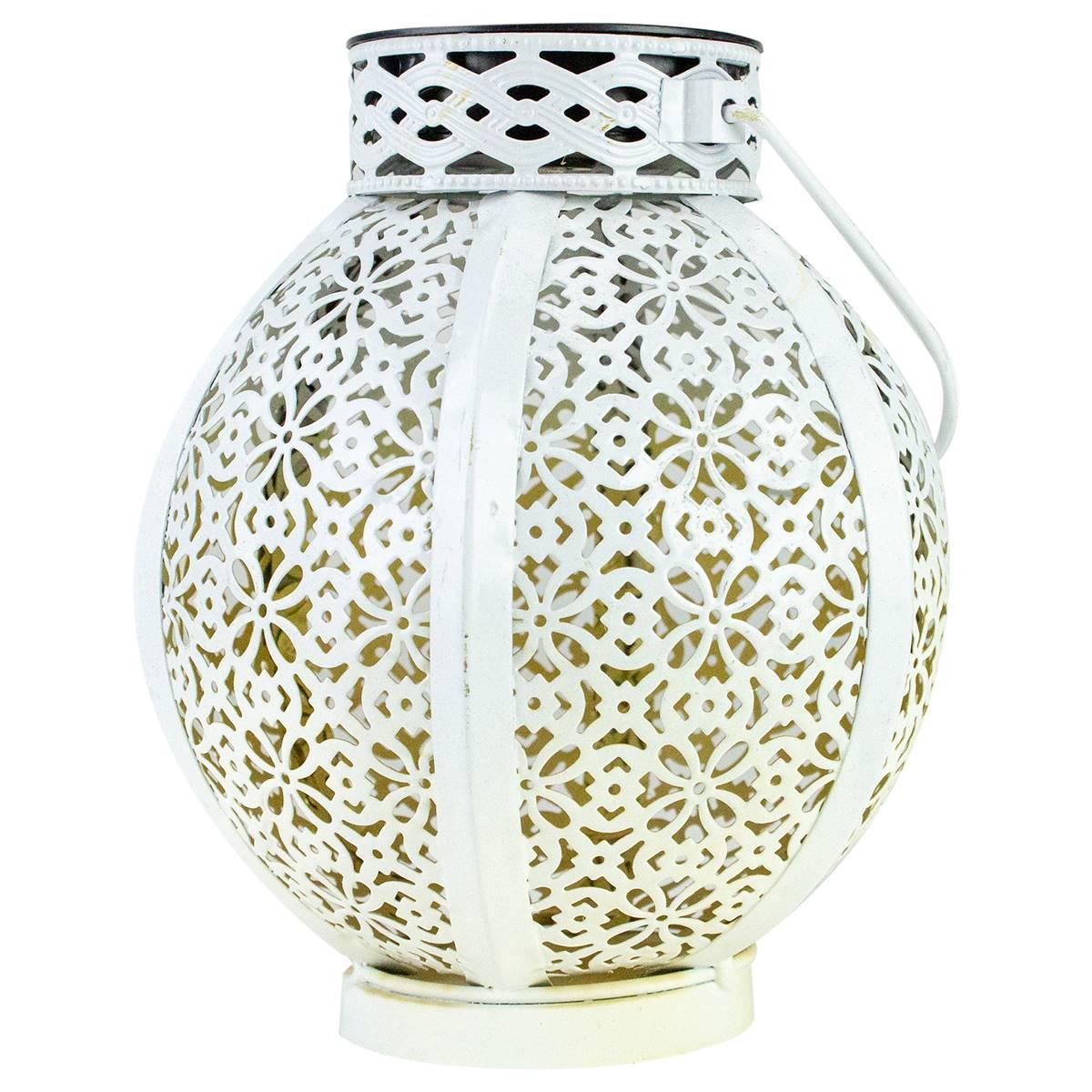 Description Vintage meets modern this Northlight Seasonal 7-inch Round Floral LED Solar Lantern. This stylish lantern contains a soft white bulb that comes powered by a discrete...