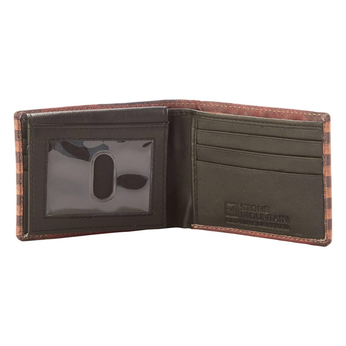 Description This Mens Stone Mountain flag wallet has a soft full-grain leather exterior and interior. The wallet features RFID security protection that helps guard against data...