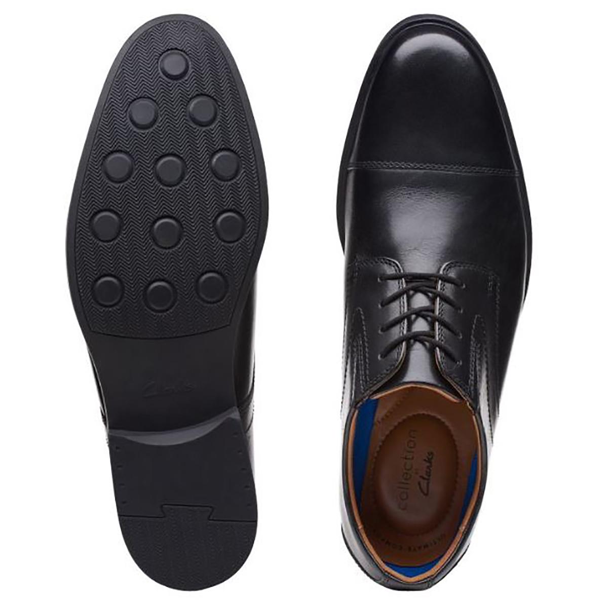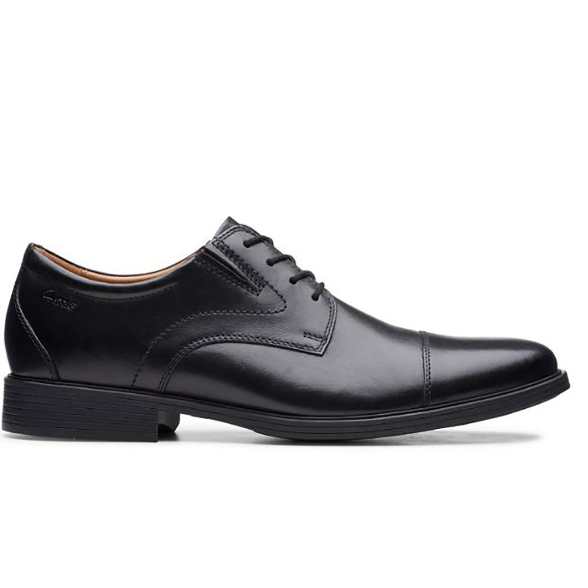 Description The Mens Clarks® Whiddon Cap oxfords are an office ready style that features a full grain leather upper and a pair of subtle elastic insets that ease its fit. As an...