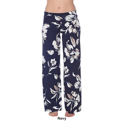 Amp up your wardrobe with these popular Womens White Mark wide-legged palazzo pants with a white floral pattern. You´ll feel comfortable and relaxed, yet well-dressed for any occasion. Made with premium quality stretchy knit.