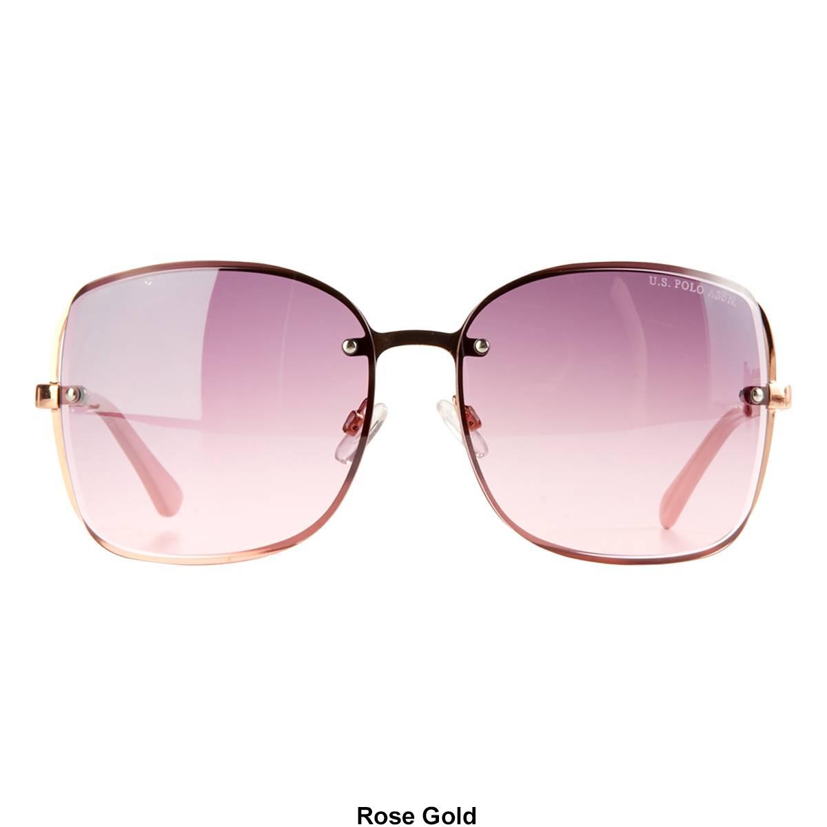 Shield your eyes in style with these chic Womens USPA metal vented oval sunglasses with chain temple. Features nose pads and gradient lenses.